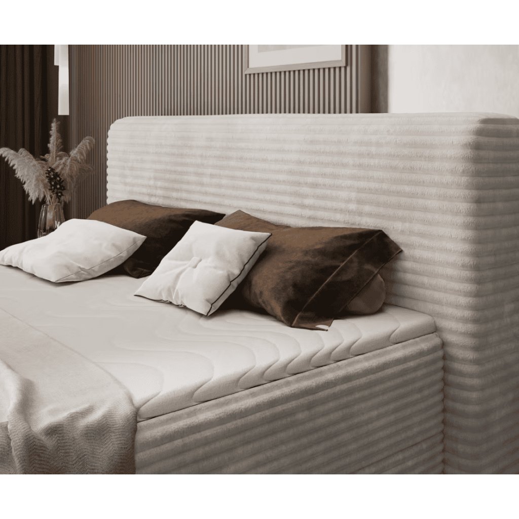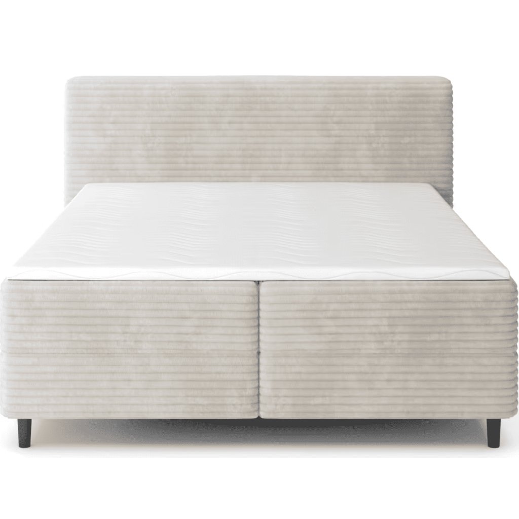 Boxspring posteľ CORTIKO je ideálnou voľbou pre tých, ktorí hľadajú maximálne pohodlie a prémiový vzhľad spálne. Vďaka vrstvenému systému s pružinovým jadrom poskytuje výnimočnú oporu chrbtici, redukuje tlakové body a prispieva k zdravému a hlbokému spánku. Elegantné čalúnenie v neutrálnom odtieni a vysoké čelo vytvárajú moderný a štýlový dojem, ktorý sa hodí do minimalistických aj luxusných interiérov. Praktická výška postele uľahčuje líhanie aj vstávanie, čo ocenia najmä nároční používatelia. Boxspring posteľ možno kombinovať s topperom pre ešte vyšší komfort. Stabilná konštrukcia zabezpečuje dlhú životnosť, zatiaľ čo nadčasový dizajn garantuje, že posteľ bude vo vašej spálni pôsobiť elegantne aj po rokoch.