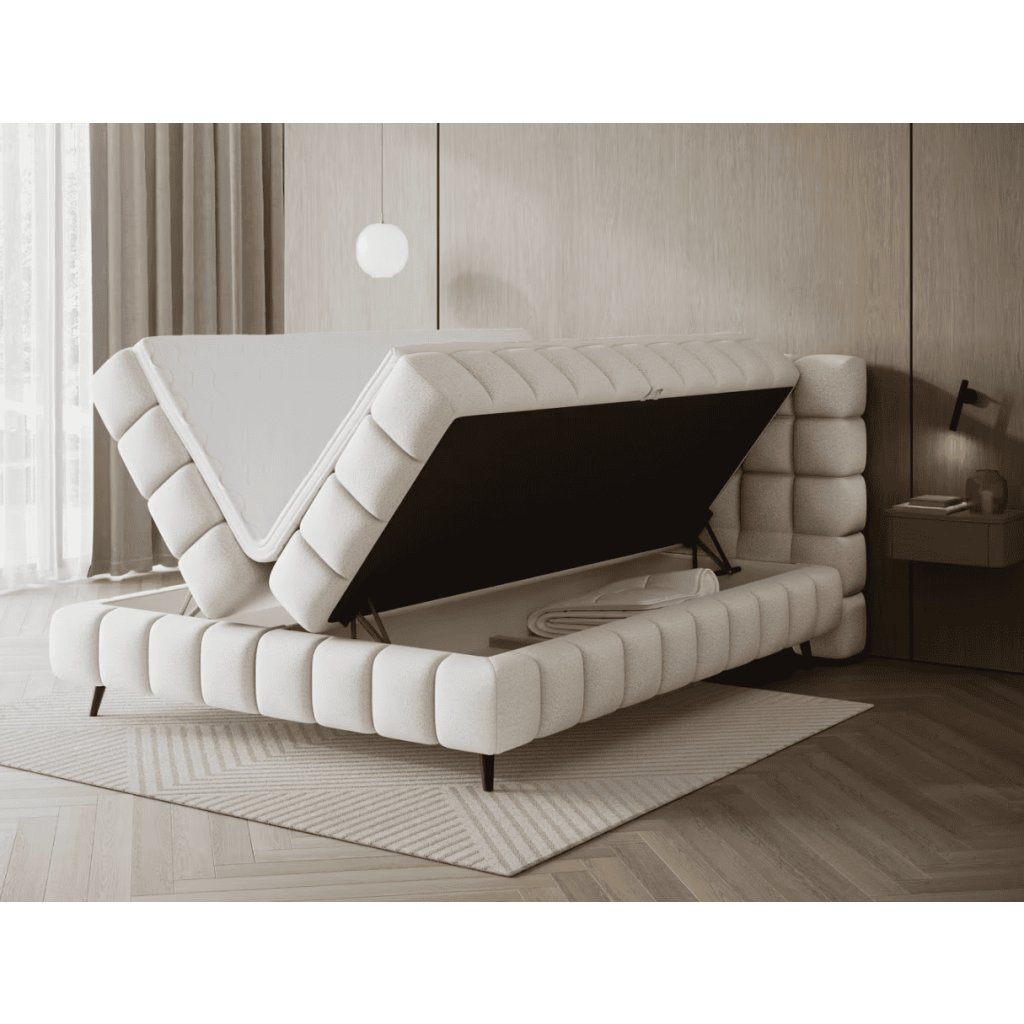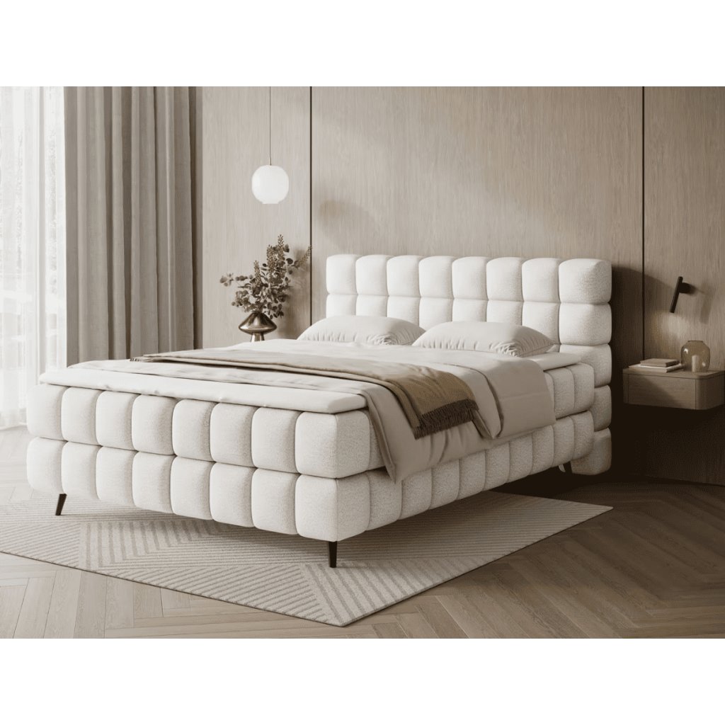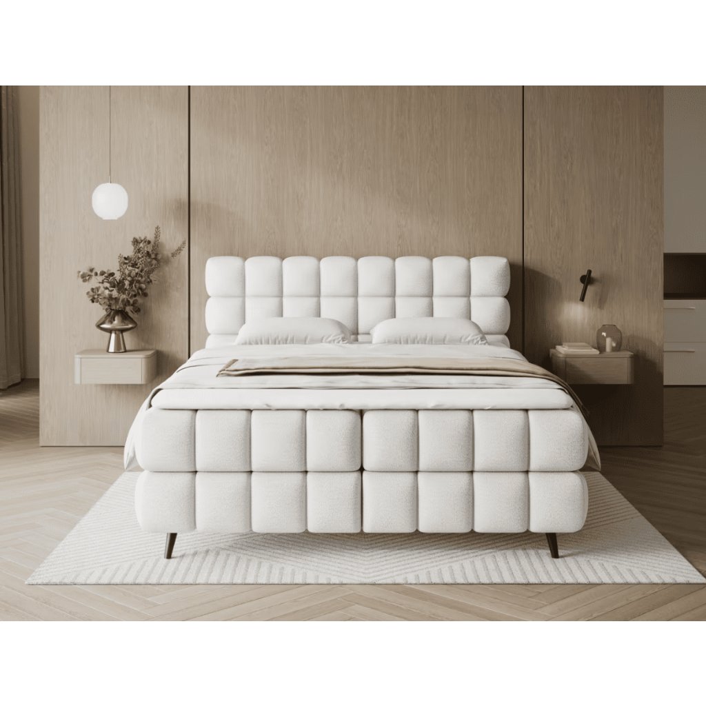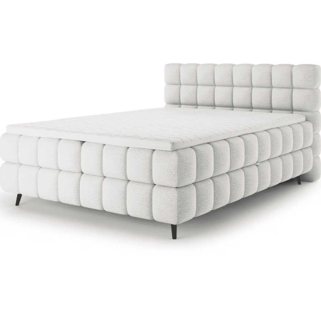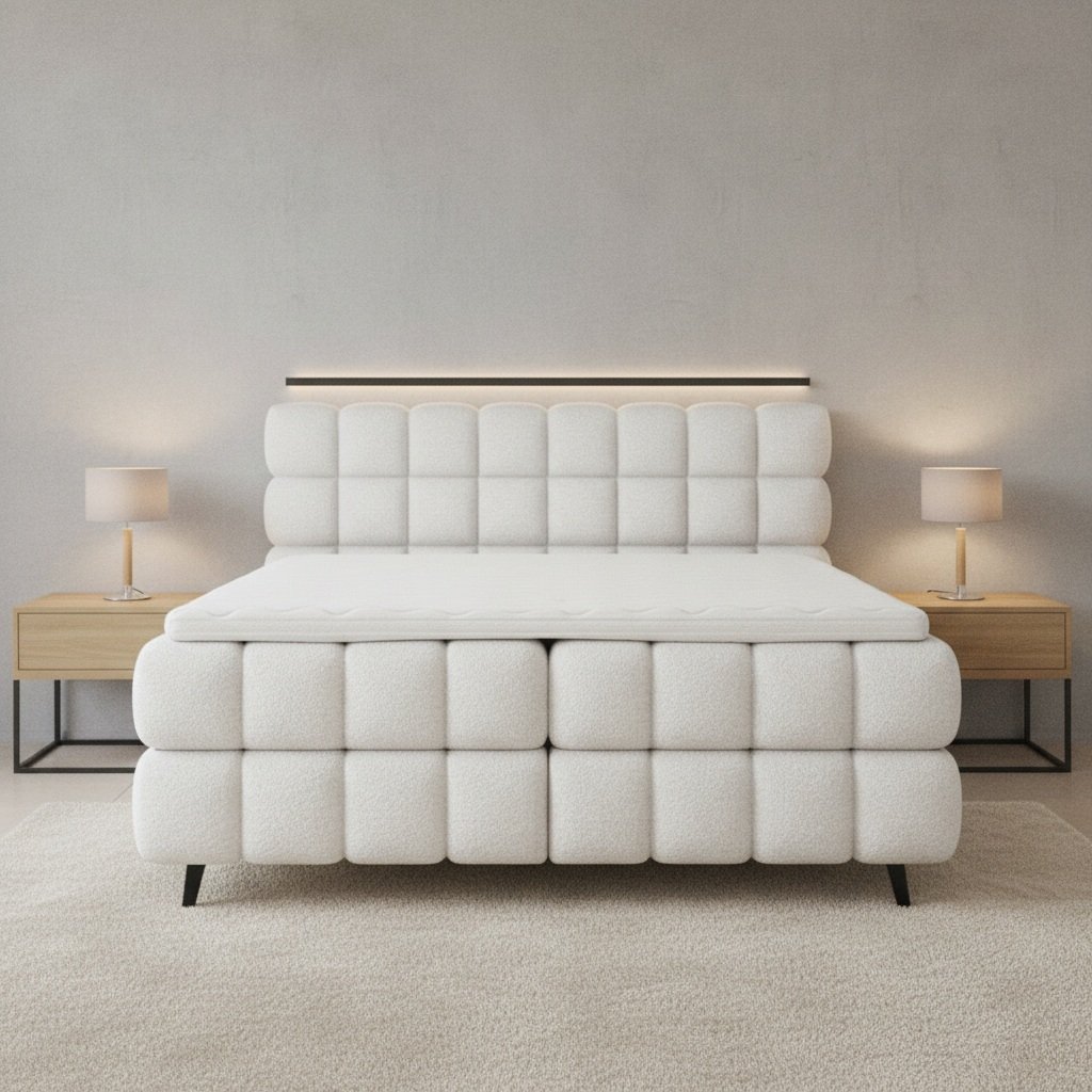 Boxspring posteľ SABENO v elegantnom sivom prevedení prináša do interiéru spojenie prvotriedneho komfortu a moderného minimalistického dizajnu. Jemné čalúnenie, vysoké čelo s prešívaním a harmonické proporcie pôsobia prémiovo a vytvárajú dokonalú dominantu spálne. Vďaka vrstvenému systému matracov poskytuje posteľ ergonomickú oporu tela, lepšie prúdenie vzduchu a dlhodobé komfortné spanie bez preležanín. Táto kontinentálna posteľ je ideálnou voľbou pre tých, ktorí hľadajú vysoký spánkový komfort, kvalitnú konštrukciu a nadčasový vzhľad, ktorý sa ľahko kombinuje s moderným aj prírodne ladeným interiérom. Ak hľadáte prémiový spánok, ergonomickú oporu a dizajn, ktorý pozdvihne celú miestnosť, kontinentálna posteľ SABENO je riešením pre dlhodobo kvalitný oddych bez kompromisov. Čalúnená posteľ SABENO je riešením pre tých, ktorí nechcú robiť kompromisy medzi štýlom a praktickosťou.