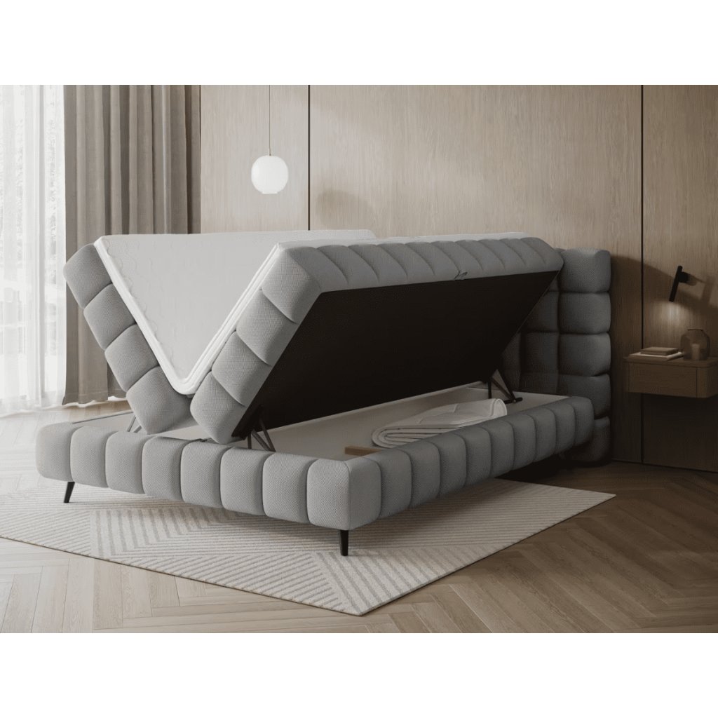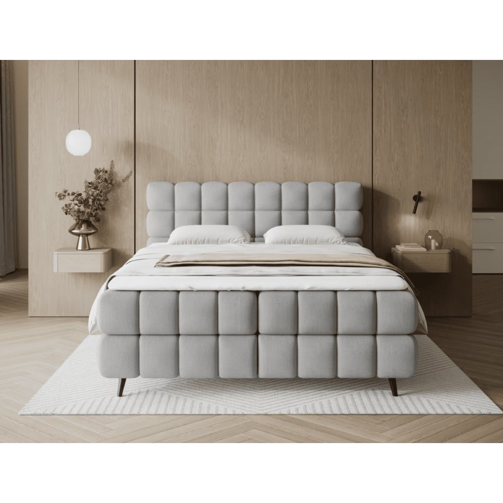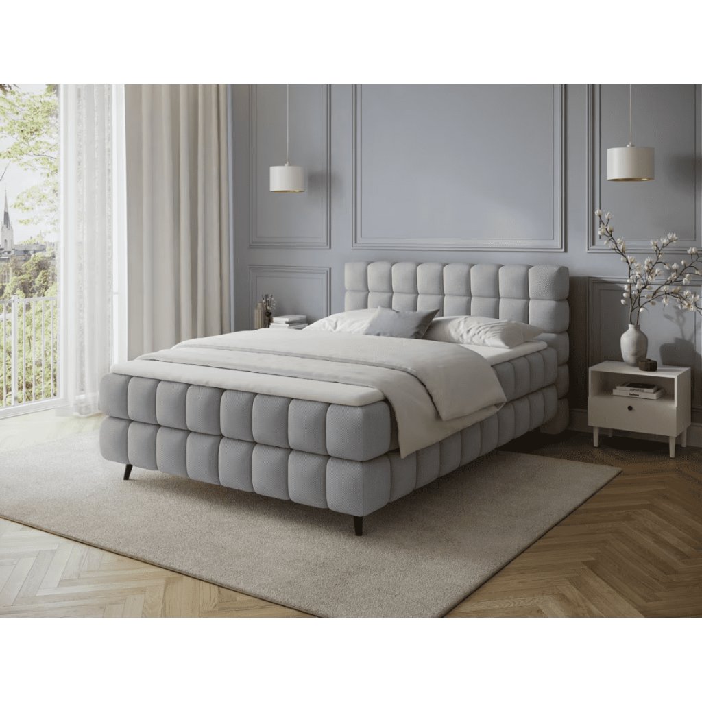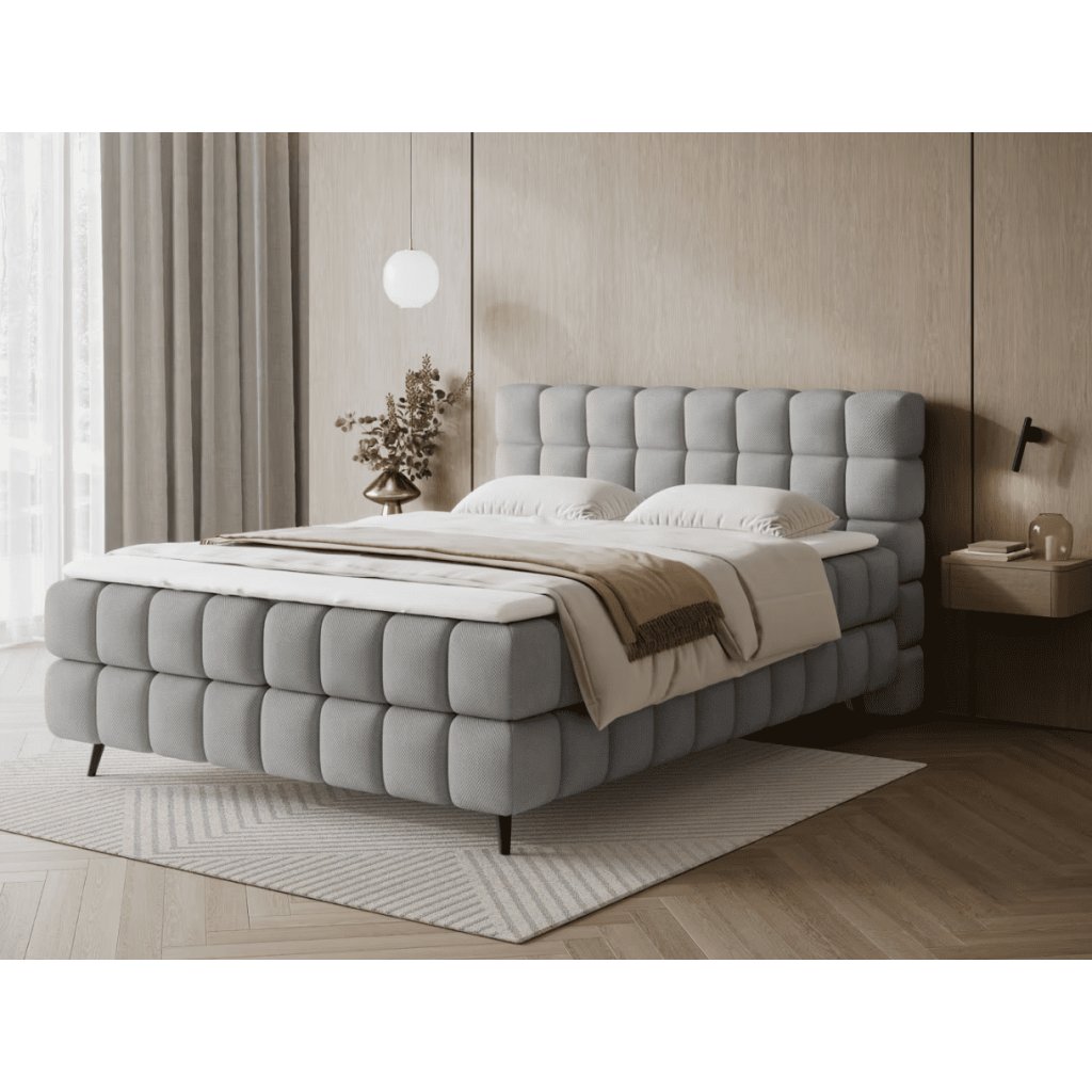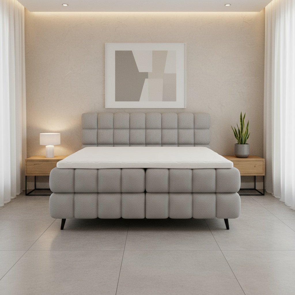 Boxspring posteľ SABENO v elegantnom sivom prevedení prináša do interiéru spojenie prvotriedneho komfortu a moderného minimalistického dizajnu. Jemné čalúnenie, vysoké čelo s prešívaním a harmonické proporcie pôsobia prémiovo a vytvárajú dokonalú dominantu spálne. Vďaka vrstvenému systému matracov poskytuje posteľ ergonomickú oporu tela, lepšie prúdenie vzduchu a dlhodobé komfortné spanie bez preležanín. Táto kontinentálna posteľ je ideálnou voľbou pre tých, ktorí hľadajú vysoký spánkový komfort, kvalitnú konštrukciu a nadčasový vzhľad, ktorý sa ľahko kombinuje s moderným aj prírodne ladeným interiérom. Spríjemnite si každý večer spánkom na posteli, ktorá vyzerá výnimočne a spí sa na nej ešte lepšie. Čalúnená posteľ SABENO je riešením pre tých, ktorí nechcú robiť kompromisy medzi štýlom a praktickosťou.