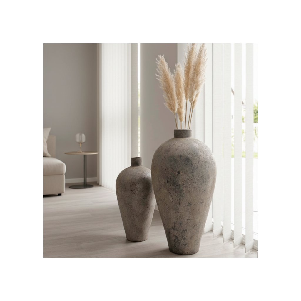 Dekoračný kvetináč z terracotty vyniká svojim prirodzeným, rustikálnym vzhľadom a jedinečnou textúrou povrchu, ktorá pripomína autentické remeselné spracovanie. Je ideálnym doplnkom do moderných aj tradičných interiérov, kde vytvára harmonický kontrast k zeleňi rastlín. Vďaka svojej výške pôsobí elegantne aj samostatne ako dekorácia na podlahe či v rohu miestnosti. Tento nadčasový kúsok dodá priestoru útulnosť, teplo a osobitý charakter.
