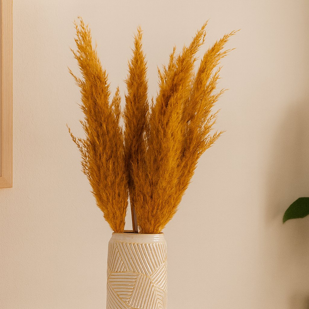 Sušená tráva je 100 % prírodného pôvodu, bez umelých farbív a úprav. Vďaka šetrnému sušeniu si zachováva svoju štruktúru a dlhú životnosť – vydrží krásna celé mesiace bez potreby starostlivosti.