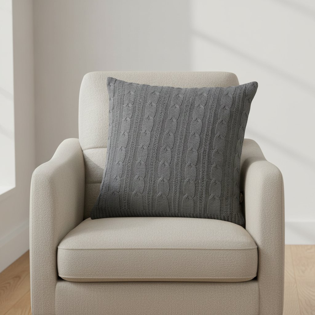 Obliečka je vyrobená zo 100 % akrylu, čo je moderné syntetické vlákno známe svojou mäkkosťou, pevnosťou a tvarovou stálosťou. Gramáž 300 GSM zaručuje, že obliečka je hrubšia, pevná a trvácna, s výraznou štruktúrou a elegantným vzhľadom.