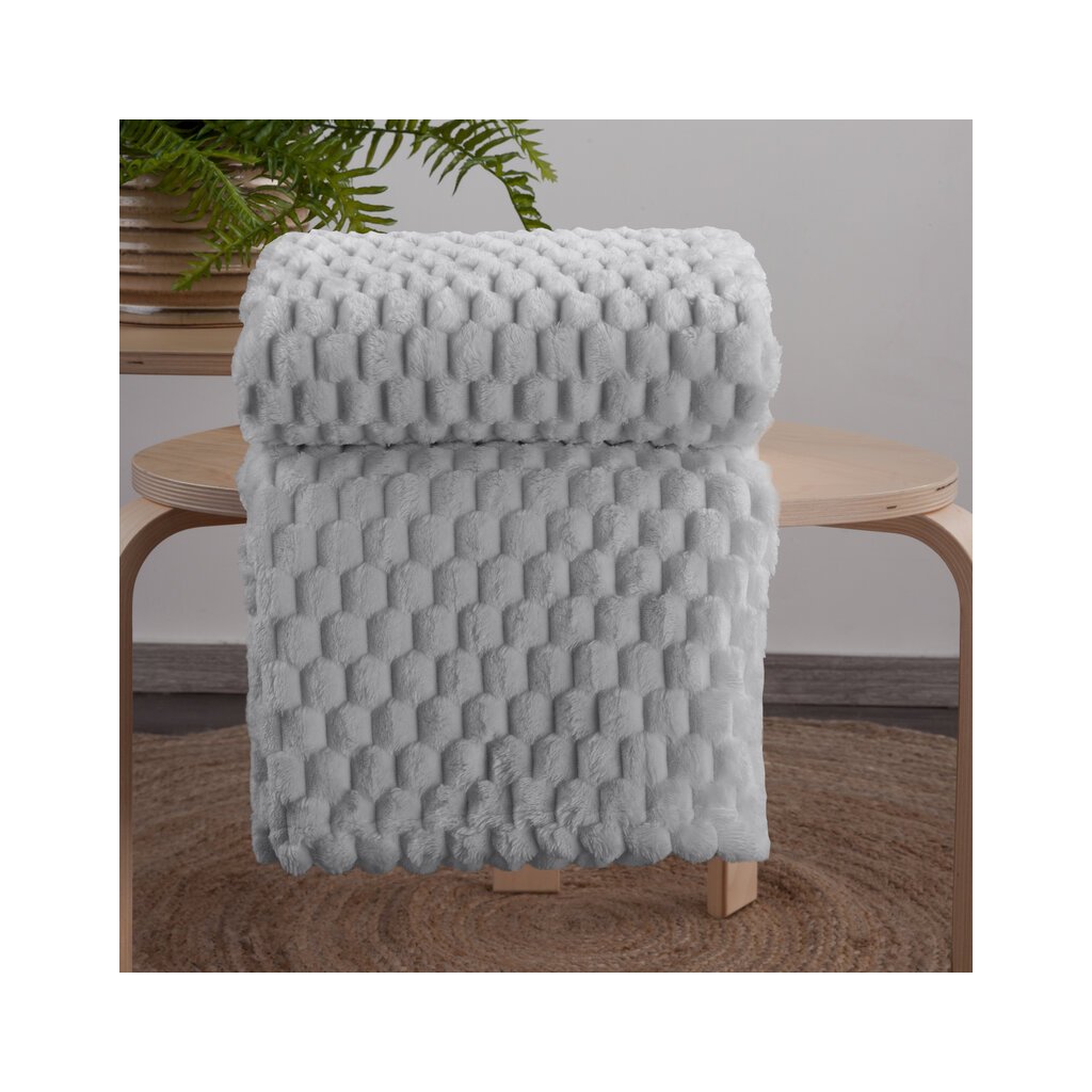 Objavte luxusný dotyk jemnosti s dekou FLANO so 3D efektom. Táto mimoriadne mäkká a hebká deka vás zahalí do príjemného tepla a pohodlia počas chladných dní. Elegantná strieborná farba dodá interiéru nádych moderného štýlu a čistoty, zatiaľ čo plastický 3D efekt vytvára atraktívny povrch, ktorý pôsobí štýlovo a jedinečne. S rozmermi 170 × 210 cm je ideálna ako prikrývka na posteľ, gauč alebo k televízii, no vynikne aj ako dekoratívny prvok v spálni či obývačke.