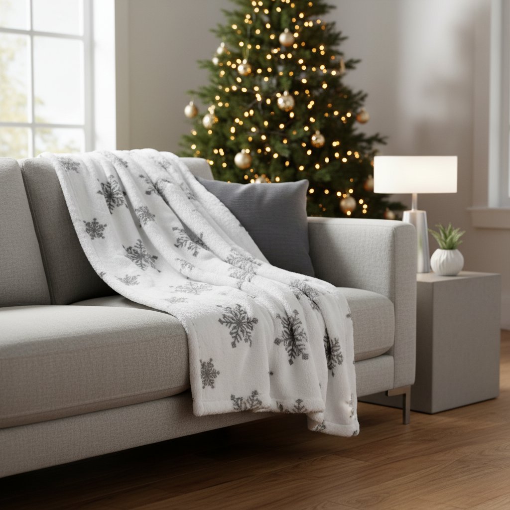 Vianočná deka BLINK 1 | biela/strieborná 150 x 200 cm