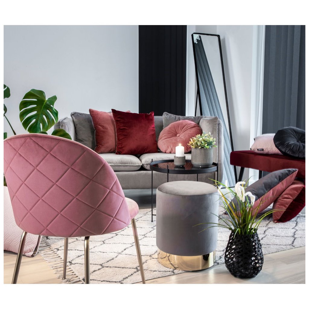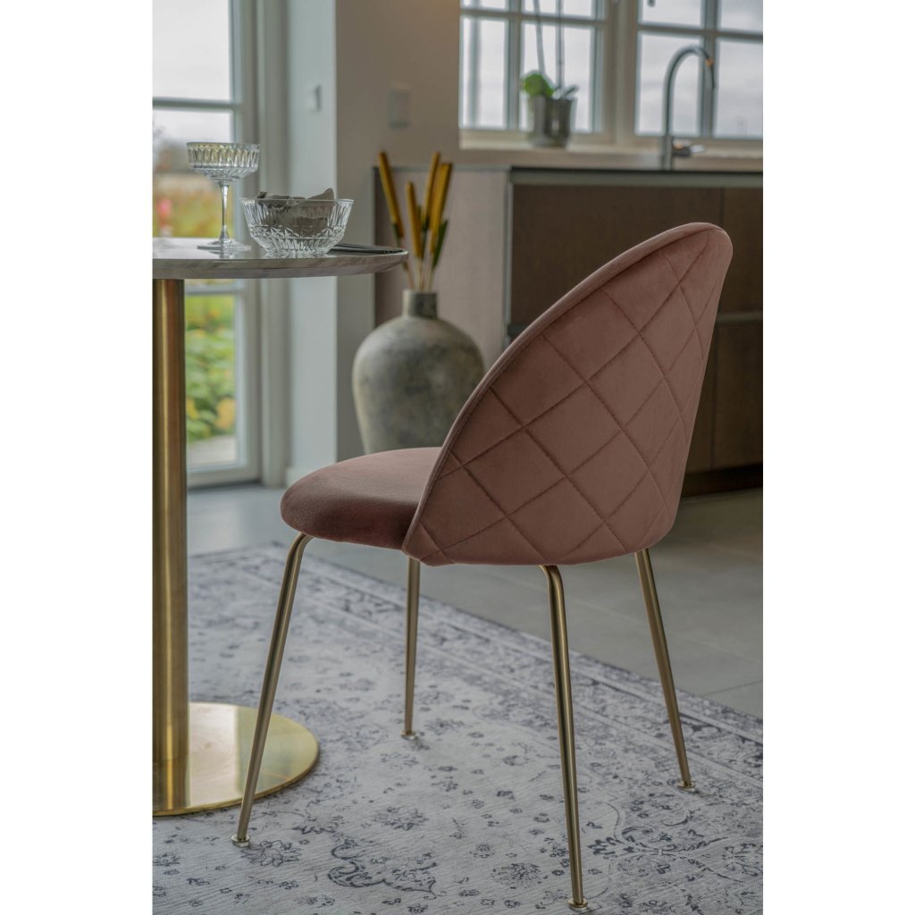 Pridajte do svojej jedálne alebo kuchyne nádych elegancie s touto štýlovou jedálenskou stoličkou GENEVE. Sedák v jemnej zamatovej látke v rúžovej farbe dokonale ladí so zlatými nohami, ktoré dodávajú stoličke luxusný a moderný vzhľad. Zadná opierka je prešívaná moderným vzorom, čo podčiarkuje sofistikovaný dizajn a pridáva vizuálnu zaujímavosť. Mäkké a pohodlné sedenie zaručuje, že každé posedenie bude príjemné a komfortné. Táto stolička je ideálnym doplnkom pre moderné interiéry, kde sa spája štýl s pohodlím.