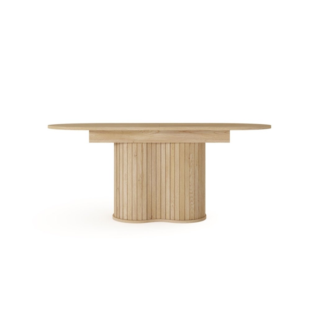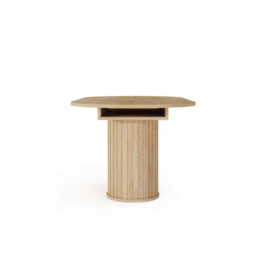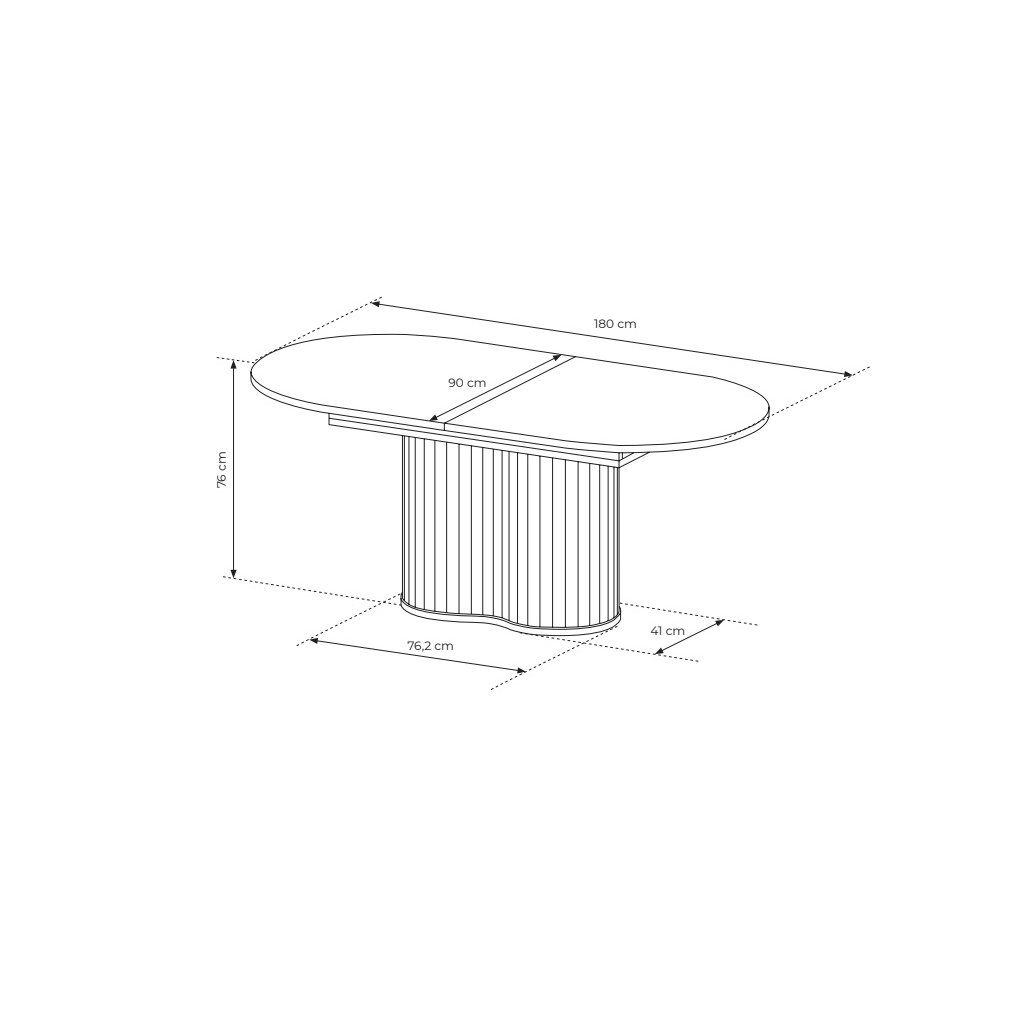 Jedálenský stôl LOVLI je vyrobený z odolného laminátu s ABS hranami, ktoré zaručujú dlhú životnosť a ochranu pred mechanickým poškodením. Drážkovaná noha stola v kombinácii so zaoblenými bočnými lištami z MDF dodáva nábytku jedinečný charakter a elegantný vzhľad. Údržba je jednoduchá a rýchla – povrch stačí utríť navlhčenou handričkou alebo použiť jemný čistiaci prostriedok určený na nábytok.