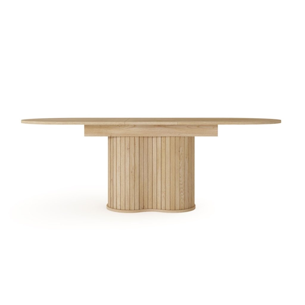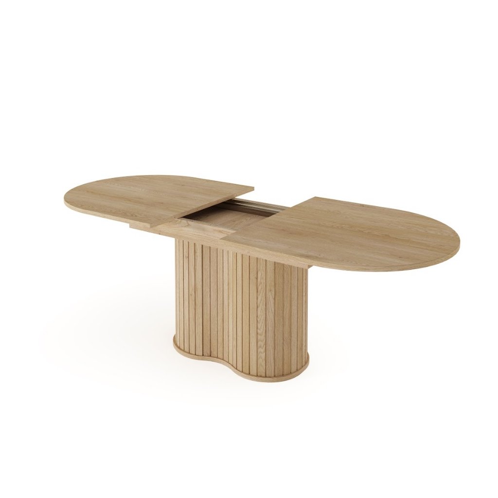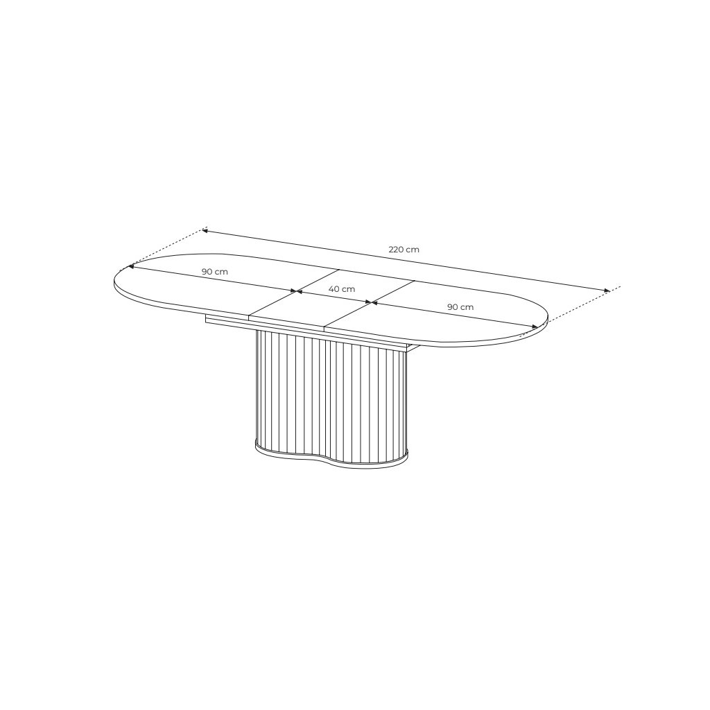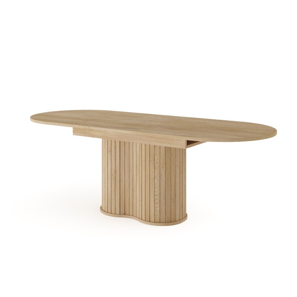 Kolekcia LOVLI je praktická, no zároveň mimoriadne štýlová a originálna, vďaka čomu umožňuje vytvoriť výnimočný a harmonicky zladený interiér. Jemné, prirodzené odtiene dubu Cremona vnesú do priestoru sviežosť, svetlo a prirodzenú eleganciu. Dominantným prvkom tejto kolekcie je charakteristický dizajn so zaoblenými bokmi a drážkovanou nohou stola, ktorá dodáva nábytku osobitý a moderný vzhľad. Rozkladací jedálenský stôl LOVLI ponúka aj praktickú funkciu rozkladu až na dĺžku 220 cm, vďaka čomu sa dokonale prispôsobí tvojim potrebám.