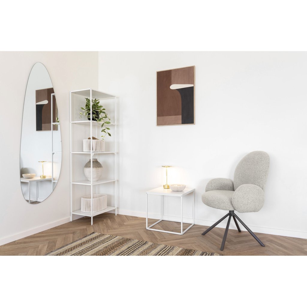Stolička stojí na pevnej oceľovej konštrukcii, ktorá zaručuje nielen celkovú stabilitu a pevnosť stoličky, ale ja možnosť otáčania. Polyuretán je trvácny, odolný voči oderu, mäkký ale drží svoj tvar a neprepúšťa vlhkosť, čo zvyšuje jeho životnosť. Odporúčame ho ošetrovať prípravkami, na to určenými. Látka Bouclé je aktuálny interiérový trend, ktorý je mäkký, hrejivý a vizuálne zaujímavý. Je to jemná, štruktúrovaná látka príjemná na dotyk.