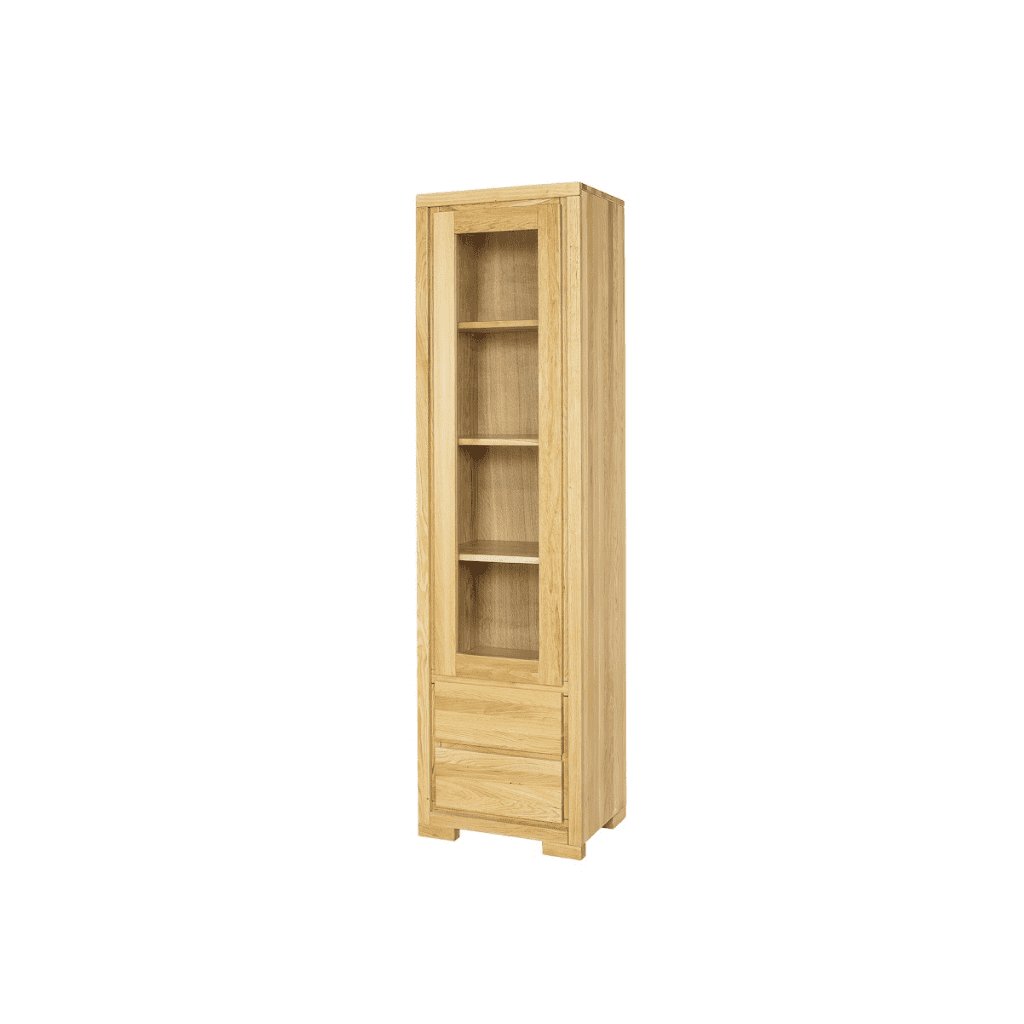 Štýlová vitrína CLASSIC KW351 z masívneho dubu v prírodnom odtieni je ideálnym riešením pre všetkých, ktorí hľadajú spojenie kvality, funkčnosti a nadčasového dizajnu. Vyrobená z poctivého dubového dreva, ktoré vyniká svojou pevnosťou, odolnosťou a krásnou kresbou. Vitrína ponúka kombináciu presklených políc a praktických zásuviek, vďaka čomu je perfektná na vystavenie dekorácií, porcelánu či kníh, a zároveň poskytuje dostatok miesta na uloženie drobností. Prírodná dubová farba a štýlový dizajn vitríny dokonale doplnia klasický interiérový dizajn vášho domova.
