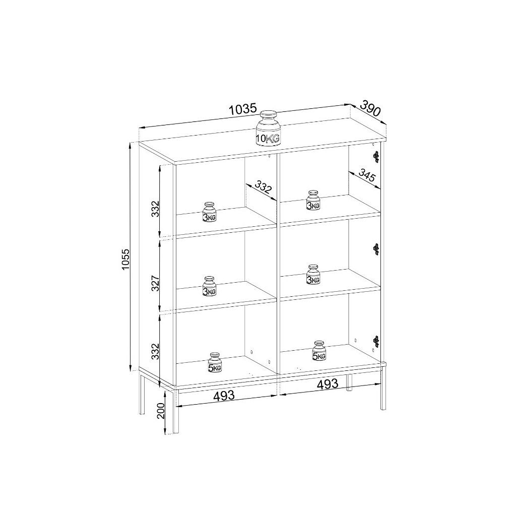- vnútorná výška medzi policami: 32,7-33,2 cm
