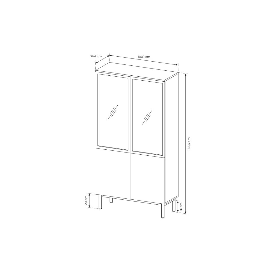 Vysoká vitrína TONG s LED osvetlením je vyrobená z prvotriednych materiálov a pre zvýšenú odolnosť je ohranená ABS páskou. Tónované tvrdené sklo v kombinácii s čiernym rámom a jemným LED osvetlením dodáva nábytku moderný a elegantný vzhľad. Vysoké drevené nohy zaisťujú stabilitu a zároveň umožňujú jednoduché čistenie pomocou robotického vysávača. Starostlivosť o povrch je nenáročná – stačí utrieť vlhkou handričkou alebo použiť jemný čistiaci prostriedok na nábytok.