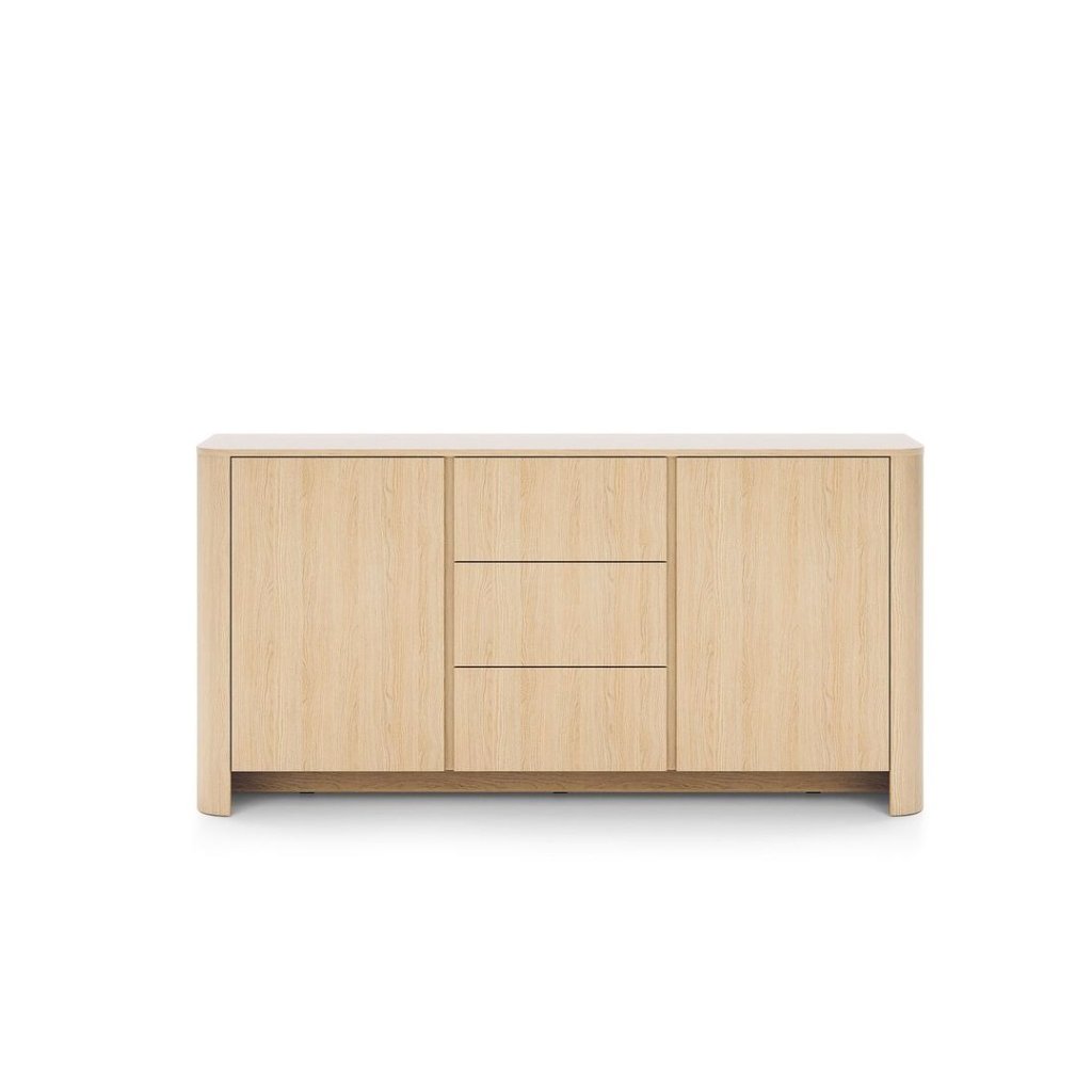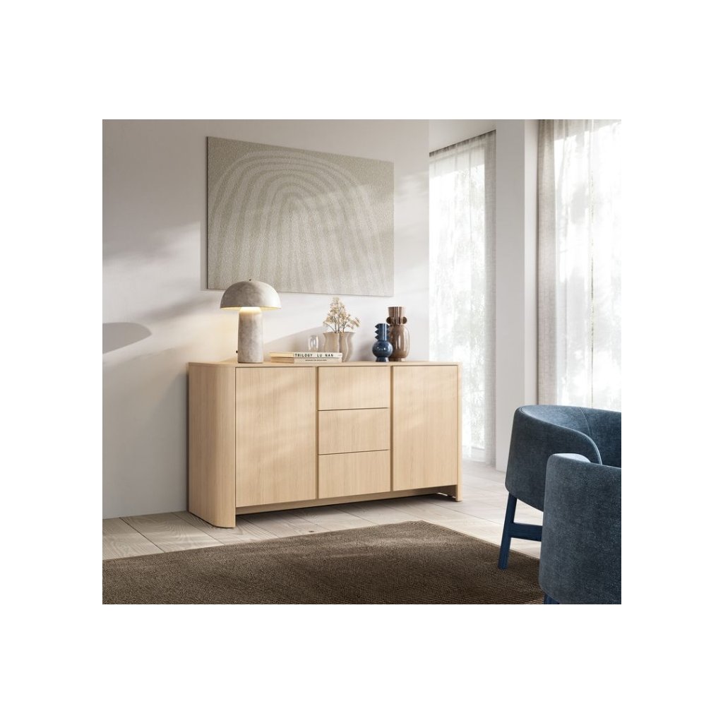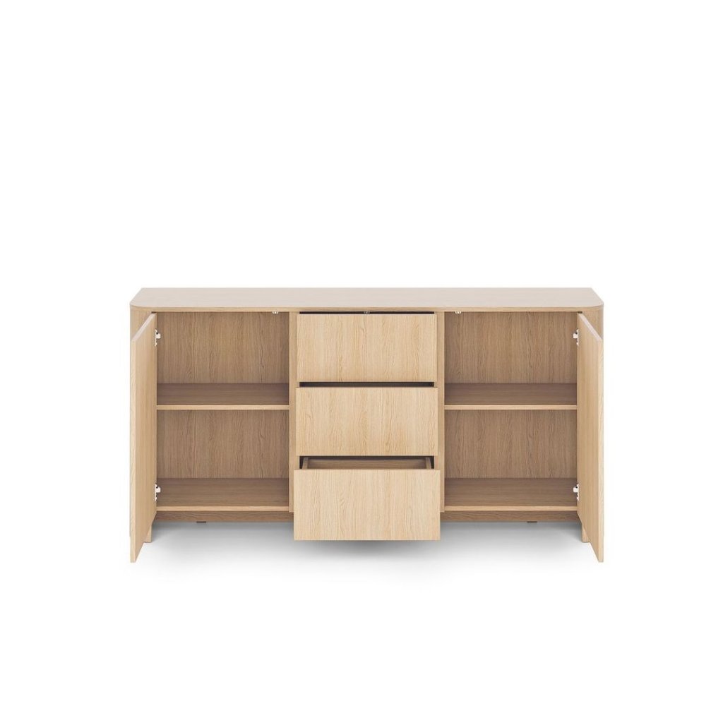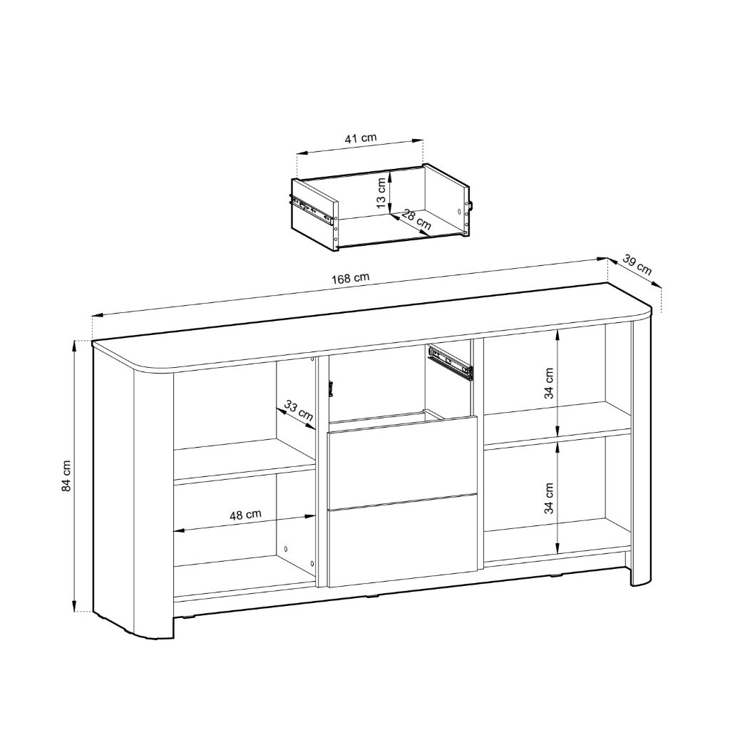 Zostava ABRIN je kolekcia moderného a funkčného nábytku, vhodná do obývacej izby, spálne alebo izby pre mládež. Poskytuje možnosť praktického a esteticky zladeného usporiadania priestoru podľa vašich potrieb. Kombinácia duba Vicenza so zaoblenými líniami vnáša do interiéru jemnosť, eleganciu a nadčasový minimalistický štýl. Komoda ABRIN KSZ168 | dub Vicenza je dvojdverová, priestranná a disponuje zásuvkami aj policami, ktoré poskytujú dostatok úložného priestoru. Otváranie je riešené moderným systémom „push to open“, ktorý zdôrazňuje čistý dizajn komody a zároveň ponúka maximálny komfort používania bez rukovätí.