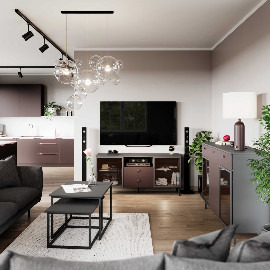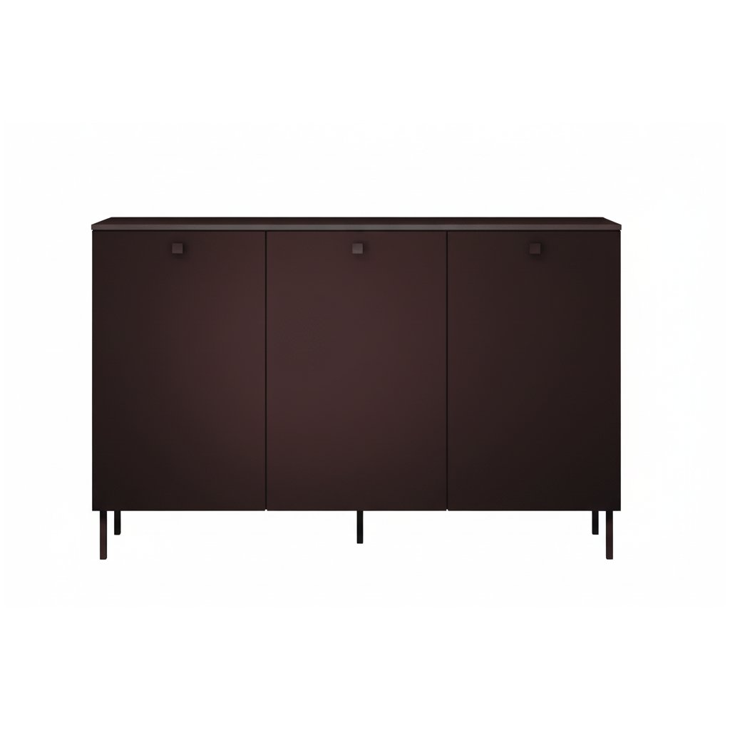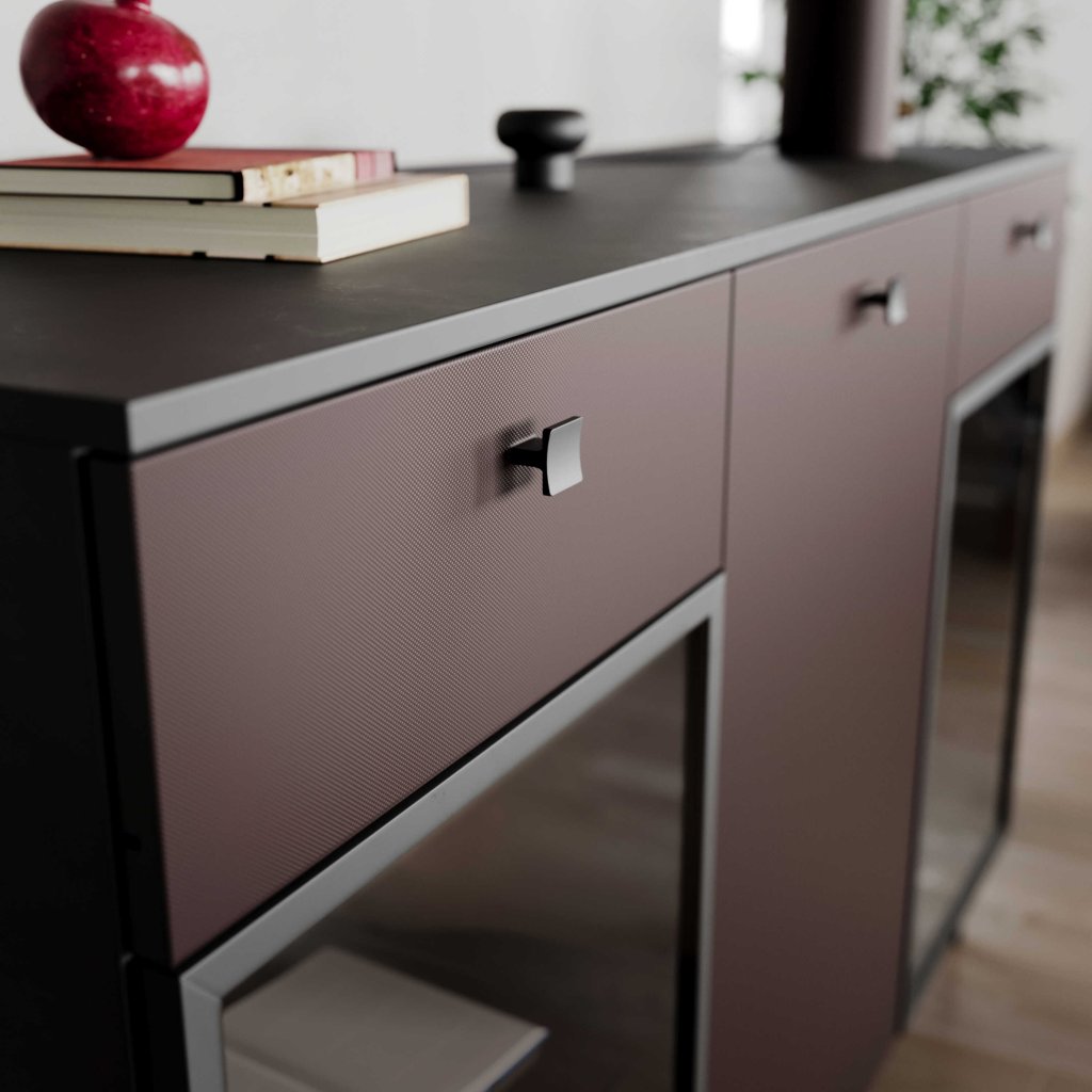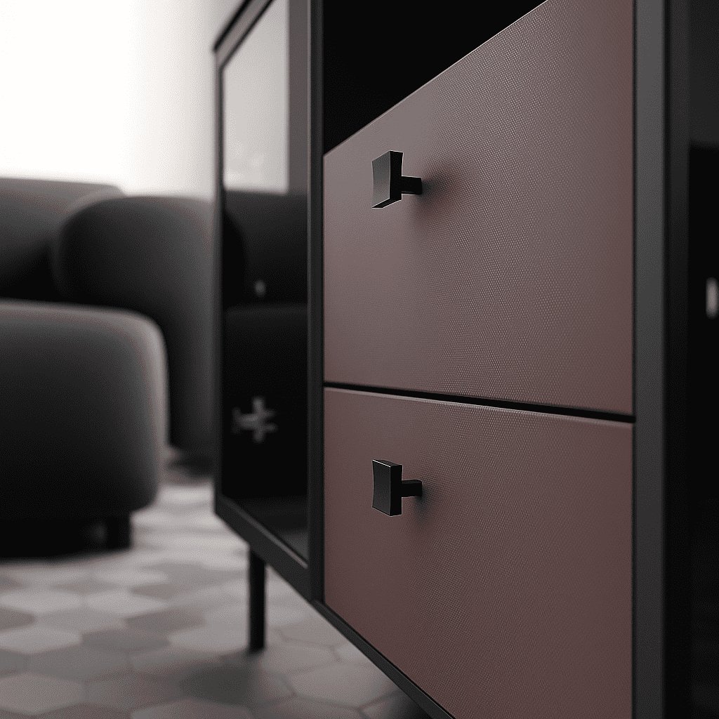 Dizajnová komoda KISS 3 v luxusnej farbe burgund v kombinácii s výraznými čiernymi líniami patrí k prémiovým kúskom modernej interiérovej tvorby. Je vytvorená pre tých, ktorí hľadajú praktické riešenie s vysokou estetickou hodnotou. Nadčasový moderný dizajn s čiernymi detailmi, minimalistické tvary, čisté línie a elegantný kontrast robia z tejto komody výnimočný doplnok obývačky, jedálne aj reprezentatívnych priestorov. Vďaka prémiovým materiálom a moderným tvarom pôsobí komoda ľahko, vzdušne a luxusne — dokonale doplní obývačku, jedáleň aj reprezentatívne priestory.