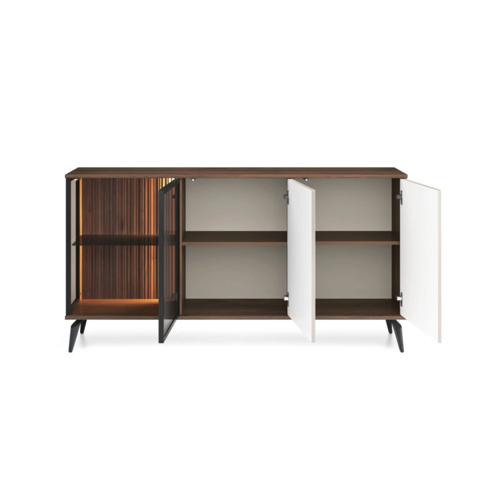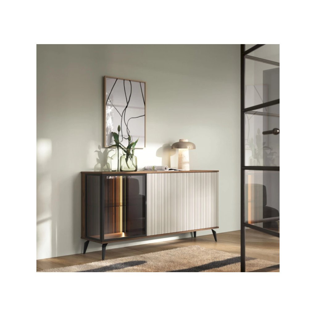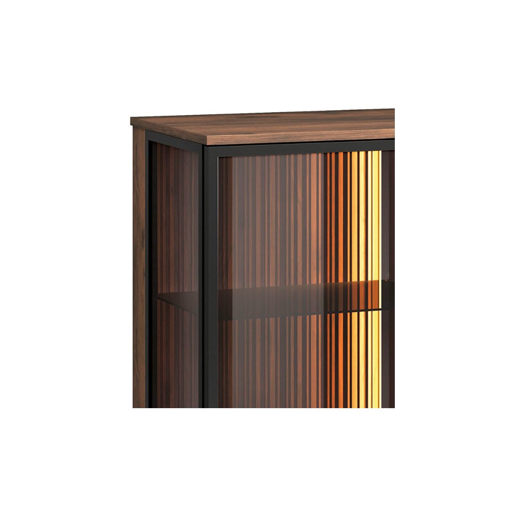 Komoda PURO K-154 zaujme svojím originálnym dizajnom a moderným prevedením, ktoré vynikne v každom interiéri. Je vyrobená z kvalitného a odolného materiálu s ABS hranami, ktoré zaručujú dlhú životnosť a ochranu pred poškodením. Charakteristickým prvkom komody sú čisté a nadčasové línie doplnené o sklenenú vitrínku so zabudovaným LED osvetlením v príjemnej teplej farbe, ktoré vytvára útulnú atmosféru. Zaujímavé dvierka s PUSH TO OPEN systémom otvárania zabezpečujú pohodlné používanie bez úchytiek a podčiarkujú elegantný vzhľad komody. Kovové nožičky dodávajú nábytku stabilitu a ľahkosť, zároveň umožňujú jednoduché čistenie pod komodou, napríklad pomocou robotického vysávača.