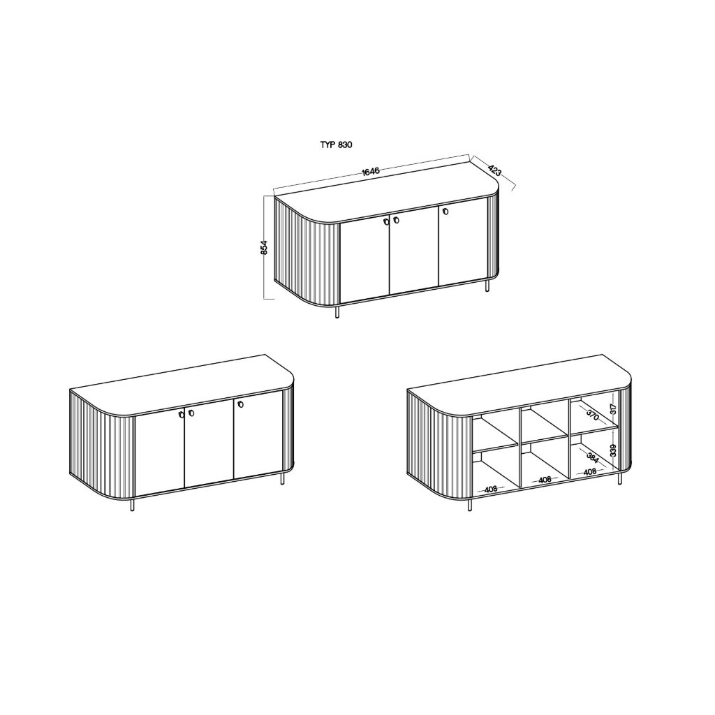Komoda VAOLIA je vyrobená z laminovanej dosky v spojení s MDF materiálom s hrúbkou 16 mm, čo jej dodáva pevnosť, odolnosť a dlhú životnosť. Povrchy sú stabilné, nenáročné na údržbu a spoľahlivo odolávajú každodennému zaťaženiu. Moderný charakter nábytku zvýrazňujú kovové nohy a úchytky, ktoré zároveň zaisťujú jeho stabilitu.