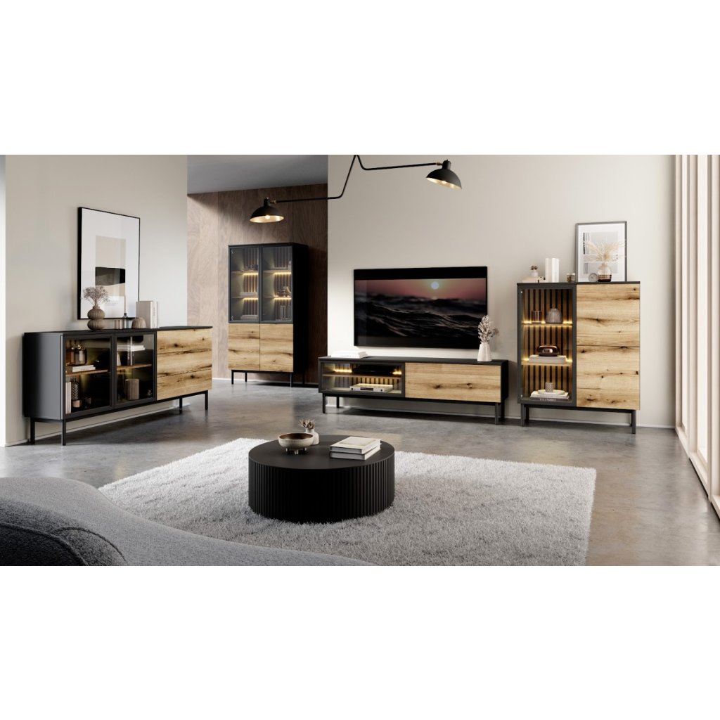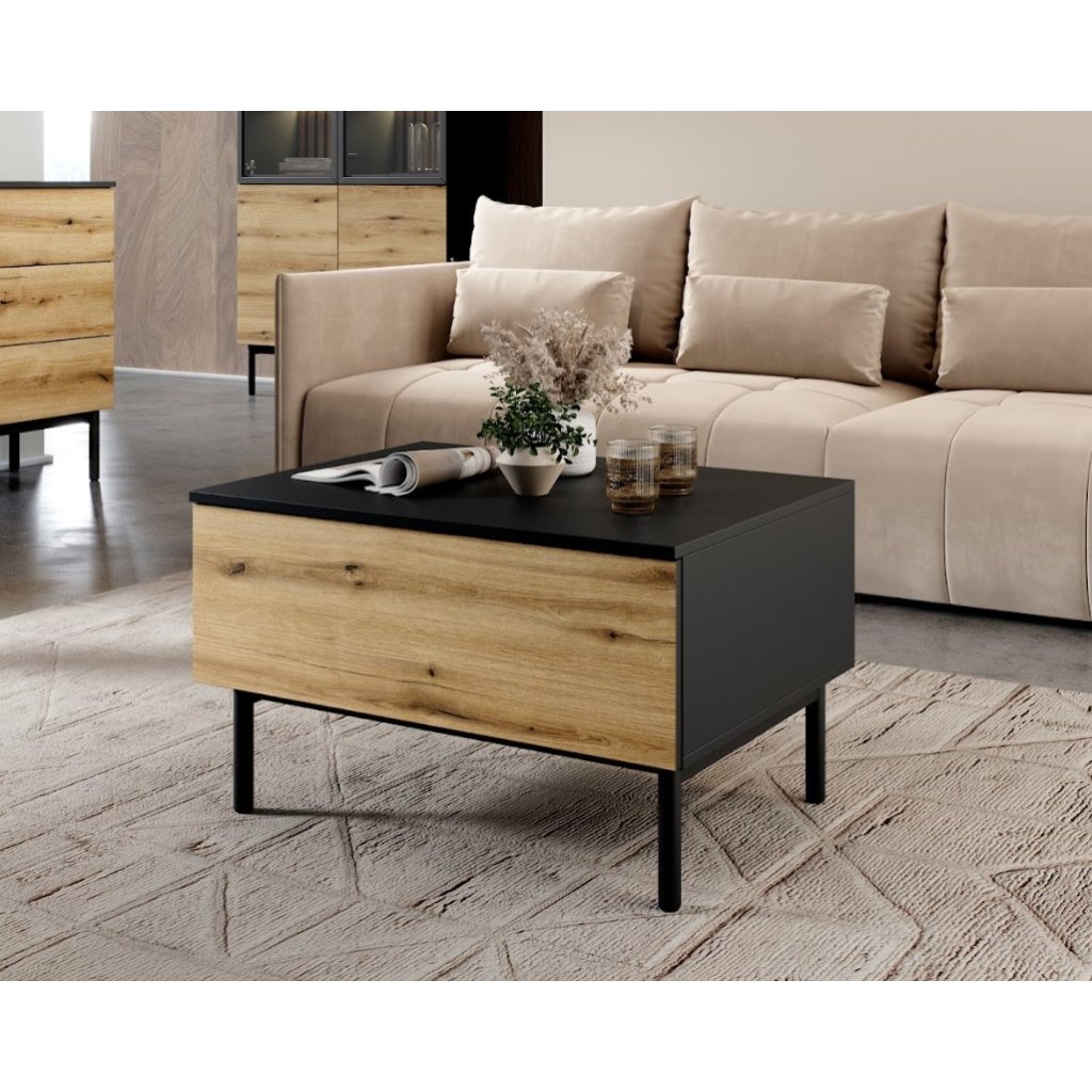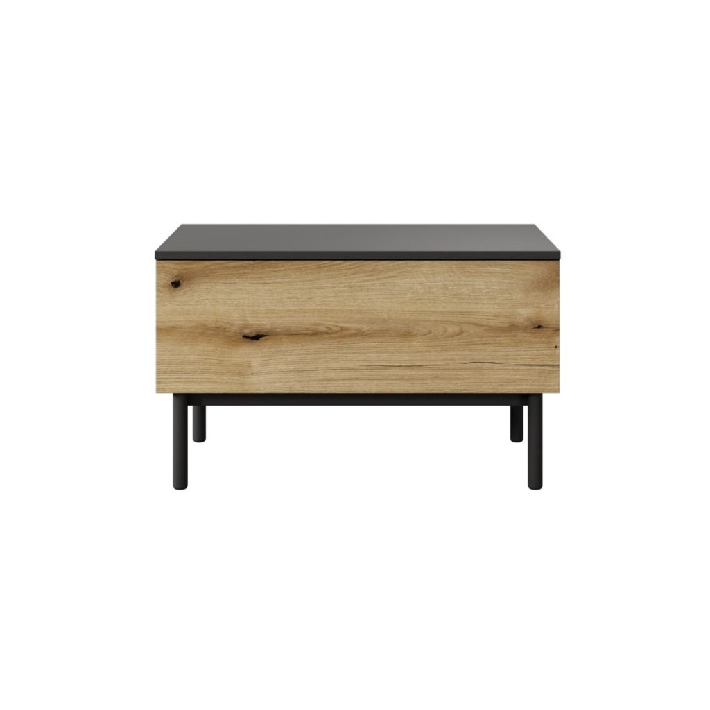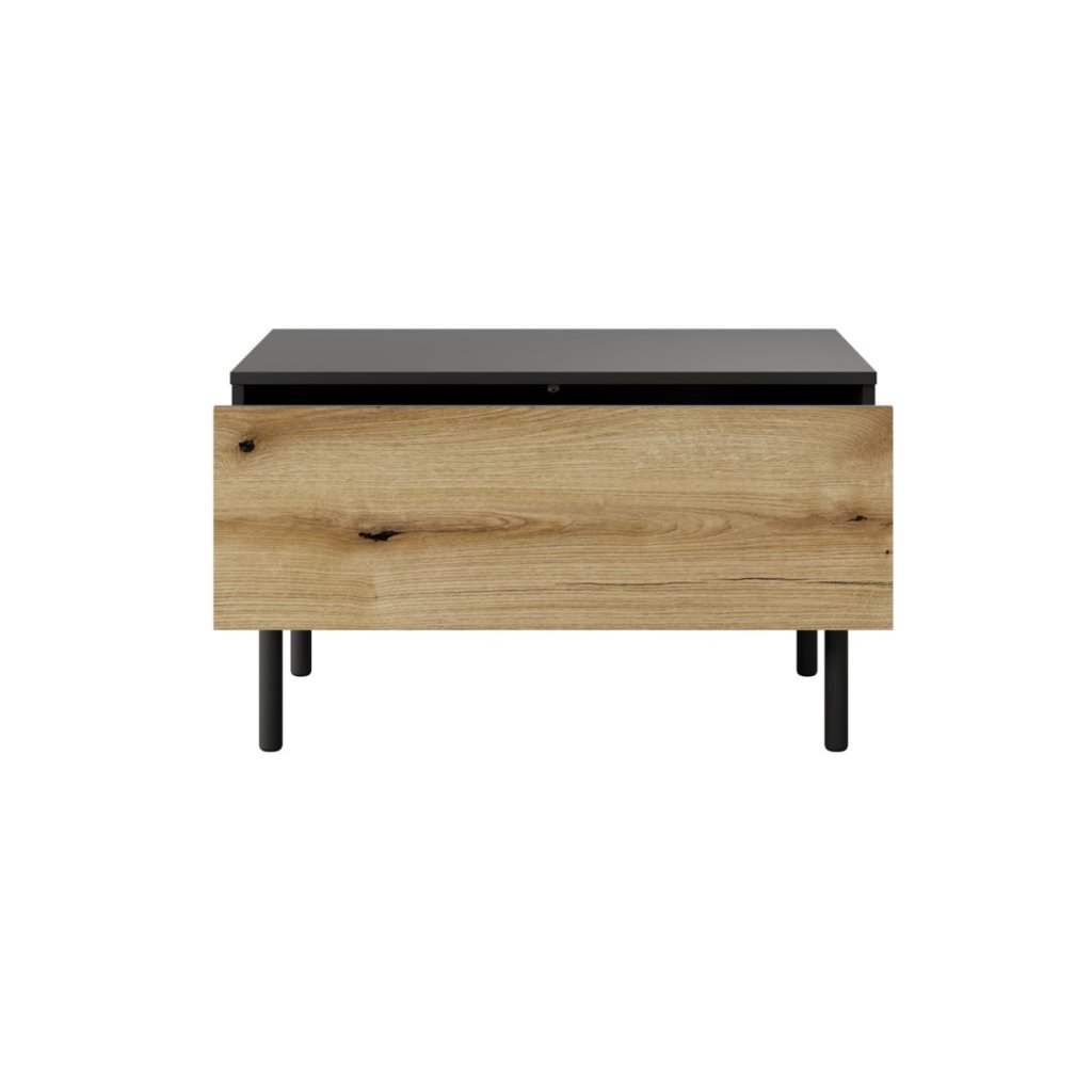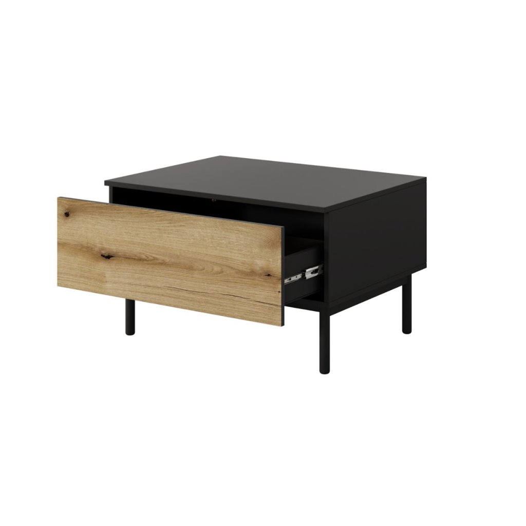 Konferenčný stolík TONG 1S spája prírodný dub s elegantnou čiernou farbou, čím vytvára harmonickú kombináciu moderného štýlu a prírodného vzhľadu. Namiesto klasických rukovätí je vybavený praktickým systémom push-to-open, ktorý umožňuje jednoduché otváranie dotykom. Stolík disponuje jednou priestrannou zásuvkou, ktorá ponúka dostatok miesta na odkladanie drobností. Tento dizajnový kúsok je ideálnou voľbou pre tých, ktorí hľadajú originálny a nadčasový doplnok do svojho interiéru.