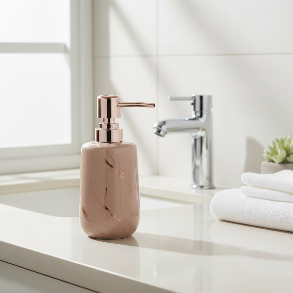 Dávkovač mydla DIOSA je vyrobený z kameniny. Čistenie je jednoduché, stačí zotrieť navlhčenou handričkou.