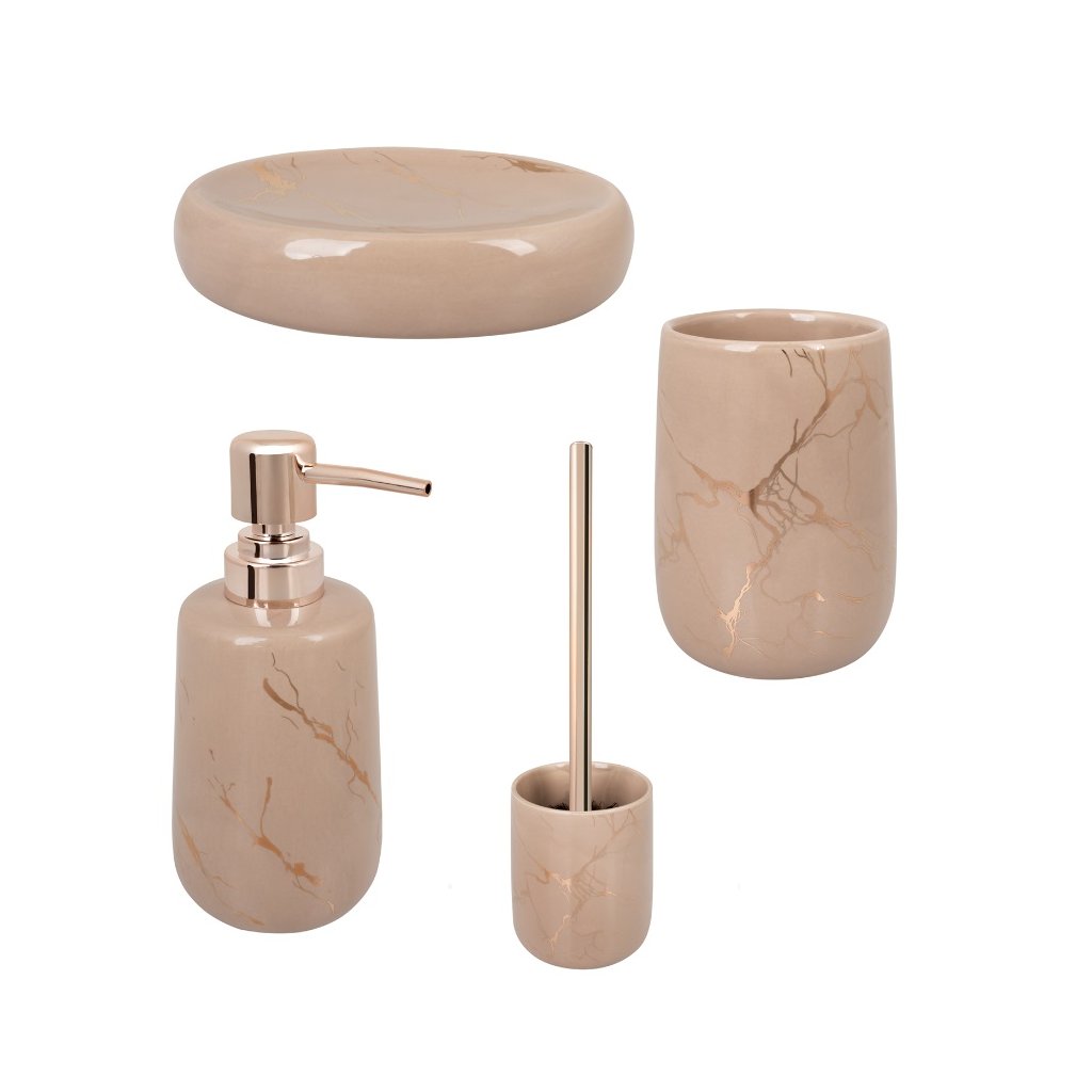 Kvalitné kúpeľňové doplnky v rôznych farbách sú čoraz obľúbenejšie. Dávkovač mydla DIOSA v trendovej béžovej farbe splní svoj účel a vďaka modernému prevedeniu poslúži aj ako dekorácia. V ponuke máme aj rovnakú mydelničku, pohár na kefky a wc kefu, môžete si teda vyskladať set, ktorý si môžete farebne zladiť s kúpeľňovým textolom.
