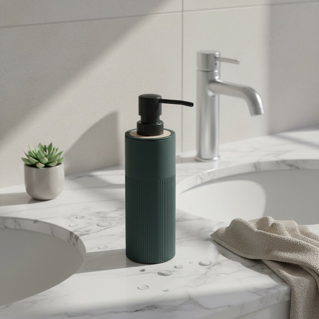 Kvalitné kúpeľňové doplnky v rôznych farbách sa stávajú čoraz obľúbenejšou voľbou pre moderné kúpeľne. Dávkovač mydla FRIDA v elegantnej kombinácii zelenej farby a bambusového detailu pôsobí sviežo a štýlovo. Jeho dizajn dodáva kúpeľni šmrnc a zároveň môže slúžiť ako dekorácia, ktorá oživí celý priestor. Okrem dávkovača mydla je možné doplniť ďalšie kúpeľňové doplnky zo série FRIDA, ako mydelničku, pohár na kefky, tácku či WC kefu, a vytvoriť tak harmonický set. Tento komplet vám umožní farebne zladiť doplnky s kúpeľňovým textilom, obkladmi alebo dekoráciami a dosiahnuť jednotný a štýlový vzhľad celej kúpeľne.