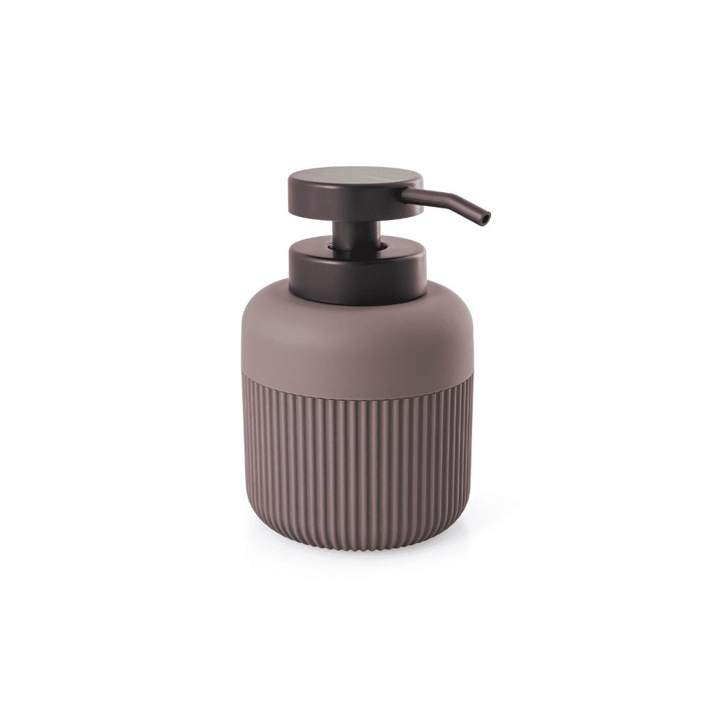 Kvalitné kúpeľňové doplnky v rôznych farbách sú čoraz obľúbenejšie. Dávkovač mydla LORETO je vyrobený z ABS plastu v zaujímavej fialovo hnedej farbe. Kontrastná čierna farba dodáva kefe elegantný vzhľad. V ponuke máme aj rovnakú mydelničku, pohár na kefky a dávkovač mydla, môžete si teda vyskladať set, ktorý si môžete farebne zladiť s kúpeľňovým textilom.
