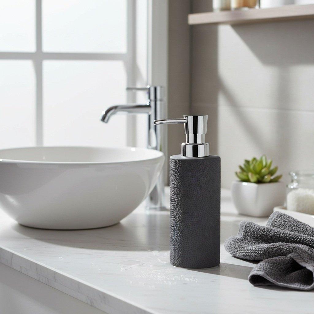 Kvalitné kúpeľňové doplnky v rôznych farbách sú čoraz obľúbenejšie. Dávkovač mydla OTELLO v sivej farbe splní svoj účel a vďaka modernému prevedeniu poslúži aj ako dekorácia. V ponuke máme aj rovnakú mydelničku, pohár na kefky a wc kefu, môžete si teda vyskladať set, ktorý si môžete farebne zladiť s kúpeľňovým textilom.