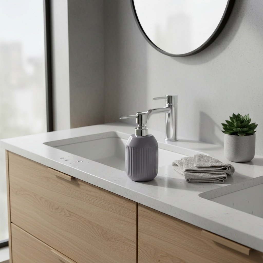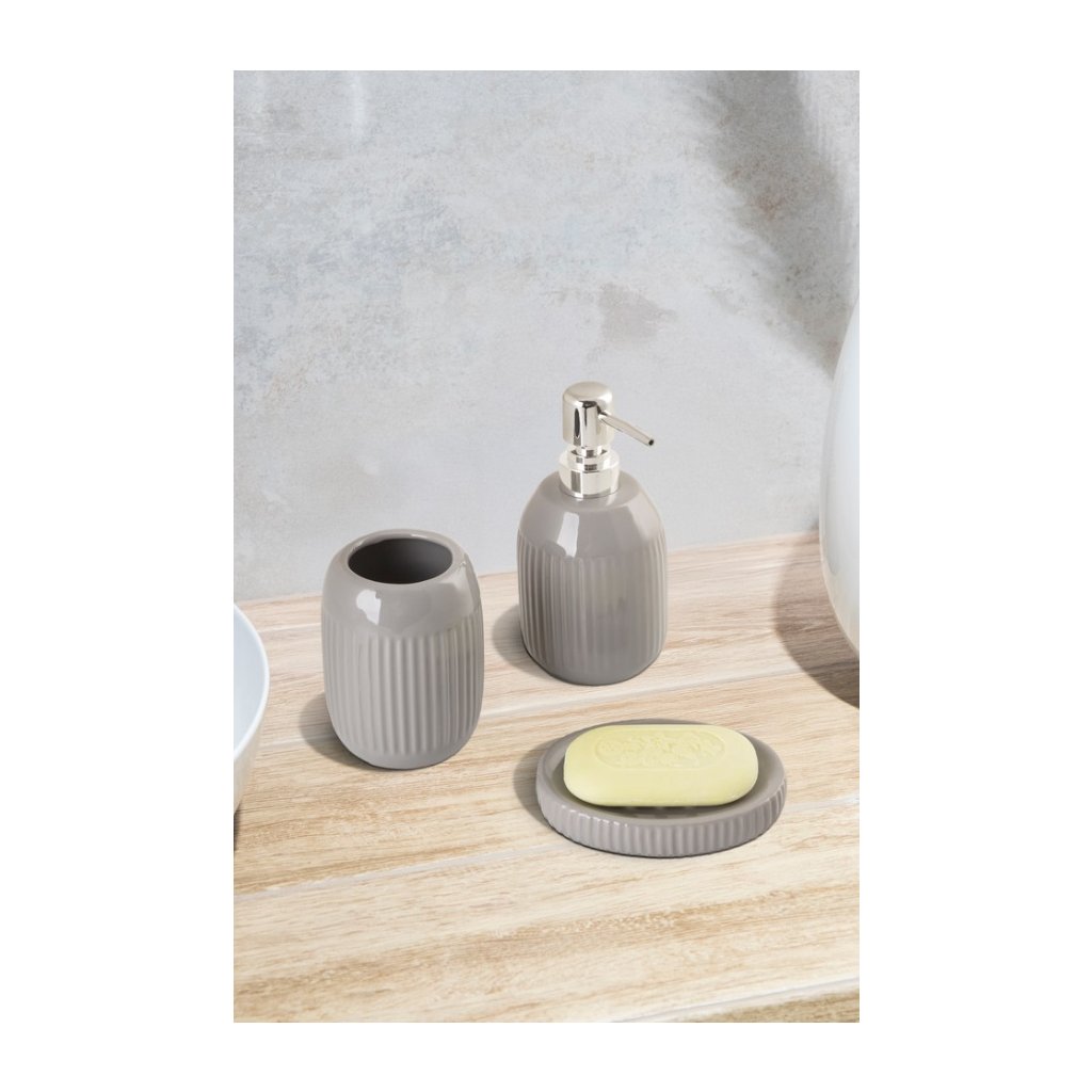 Dávkovač mydla TIERRA je vyrobený z kvalitnej kameniny s lesklou sivou povrchovou úpravou, ktorá jej dodáva elegantný a nadčasový vzhľad. Materiál je odolný a je pevný, chemicky odolný a zdravotne nezávadný. Čistenie je veľmi jednoduché a nenáročné.