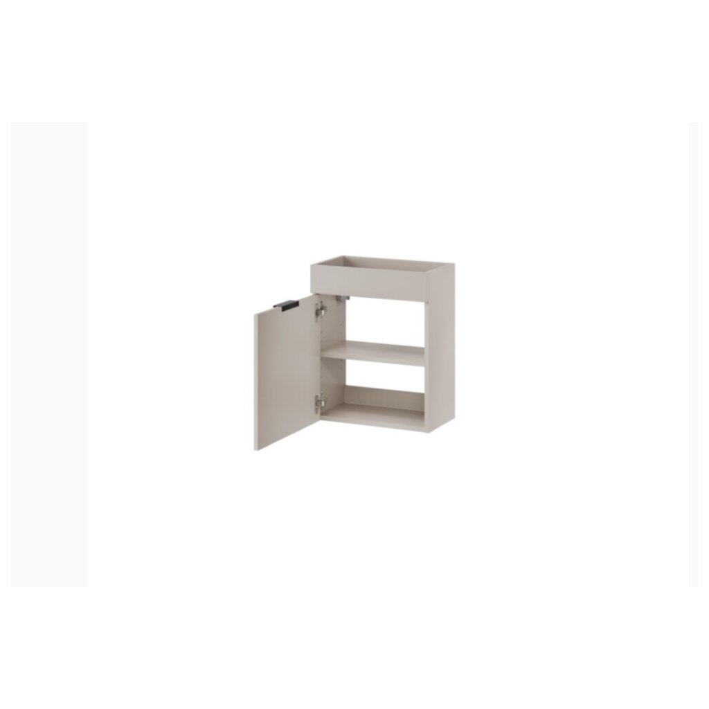 Kúpeľňová skrinka NANCY prináša dokonalú rovnováhu medzi moderným štýlom a prirodzenou eleganciou. Povrchová úprava v odtieni cashmere dodáva interiéru sviežosť, čistotu a ľahkosť, vďaka čomu je skrinka ideálnou voľbou pre tých, ktorí hľadajú spojenie estetiky, praktickosti a nadčasového dizajnu. Skrinka ponúka jednu priestrannú skrinku a praktickú policu, čo zaisťuje dostatok úložného priestoru pre kúpeľňové potreby. Výhodou je aj možnosť montáže otvárania dvierok na pravú alebo ľavú stranu, podľa usporiadania kúpeľne. Umývadlo ani batéria nie sú súčasťou balenia.
