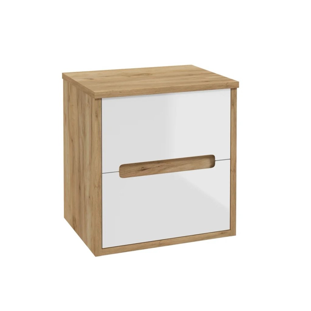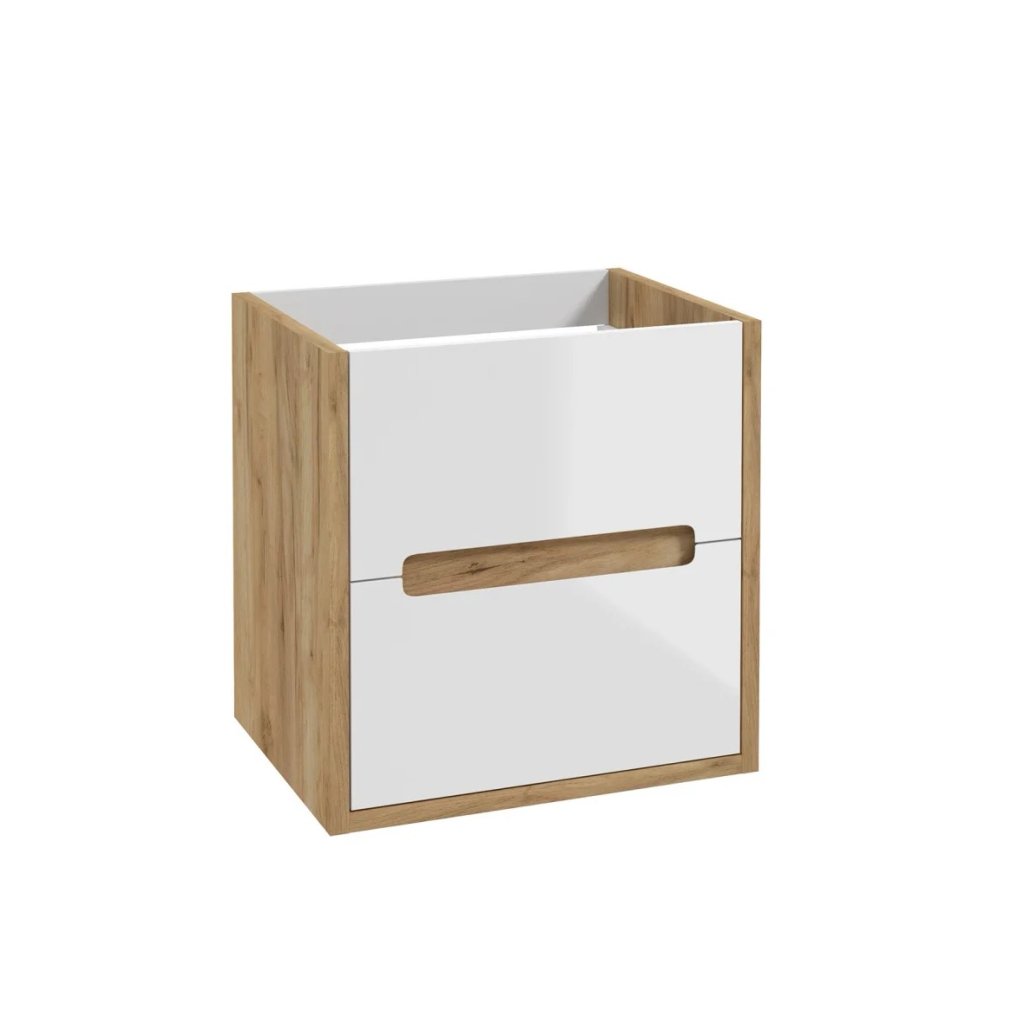 Kúpeľňové skrinky NOBU v kombinácii bieleho lesku a dubu craft prinášajú dokonalú harmóniu moderného štýlu a prírodného vzhľadu. Spojenie žiarivo bieleho povrchu s teplým dreveným dekorom vytvára luxusný, no zároveň útulný dizajn, ktorý sa hodí do moderných aj klasických kúpeľní. Skrinka pod umývadlo NOBU D60 je vyrobená z kvalitnej LTD a MDF fóliovanej dosky, čo zaručuje dlhú životnosť a odolnosť. Praktické zásuvky s mechanizmom tichého zatvárania poskytujú pohodlné a funkčné riešenie pre každodenné používanie. Vyberte si kvalitu a dizajn, ktorý pretrvá – doprajte svojej kúpeľni štýlový a nadčasový prvok.