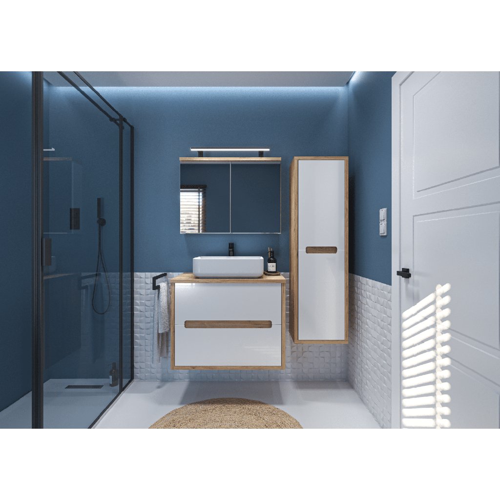 Kúpeľňové skrinky NOBU v kombinácii bieleho lesku a dubu craft prinášajú dokonalú harmóniu elegancie a útulnosti. Spojenie žiarivého bieleho povrchu s teplým dreveným dekorom vytvára luxusný dizajn, ktorý sa hodí do moderných aj klasických kúpeľní. Skrinka pod umývadlo NOBU D60 je vyrobená z kvalitnej LTD a MDF fóliovanej dosky, čo zaručuje odolnosť a dlhú životnosť. Praktické zásuvky s mechanizmom tichého zatvárania poskytujú pohodlný priestor na uloženie kozmetiky, čistiacich prostriedkov či iných kúpeľňových potrieb. Vyberte si moderný dizajn spojený s kvalitou, ktorý dodá vašej kúpeľni štýlový a nadčasový charakter.