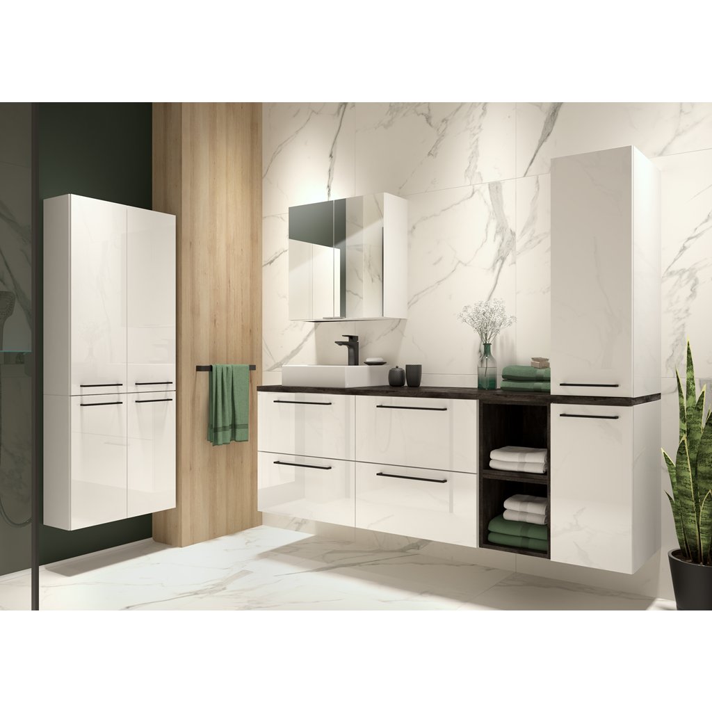 Závesná skrinka do kúpeľne FERATA A30 1D/22 v bielom lesklom prevedení je praktickým a elegantným doplnkom každej kúpeľne. Skrinku si môžete jednoducho prispôsobiť vlastnému štýlu kombináciou s rôznymi dizajnovými úchytkami dostupnými v rozmanitých farbách a prevedeniach. Úchytky nie sú súčasťou balenia.