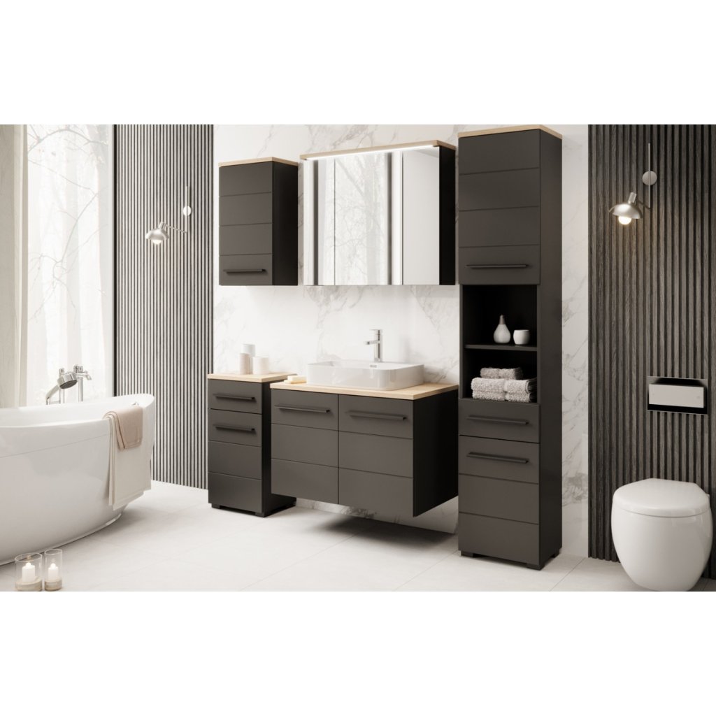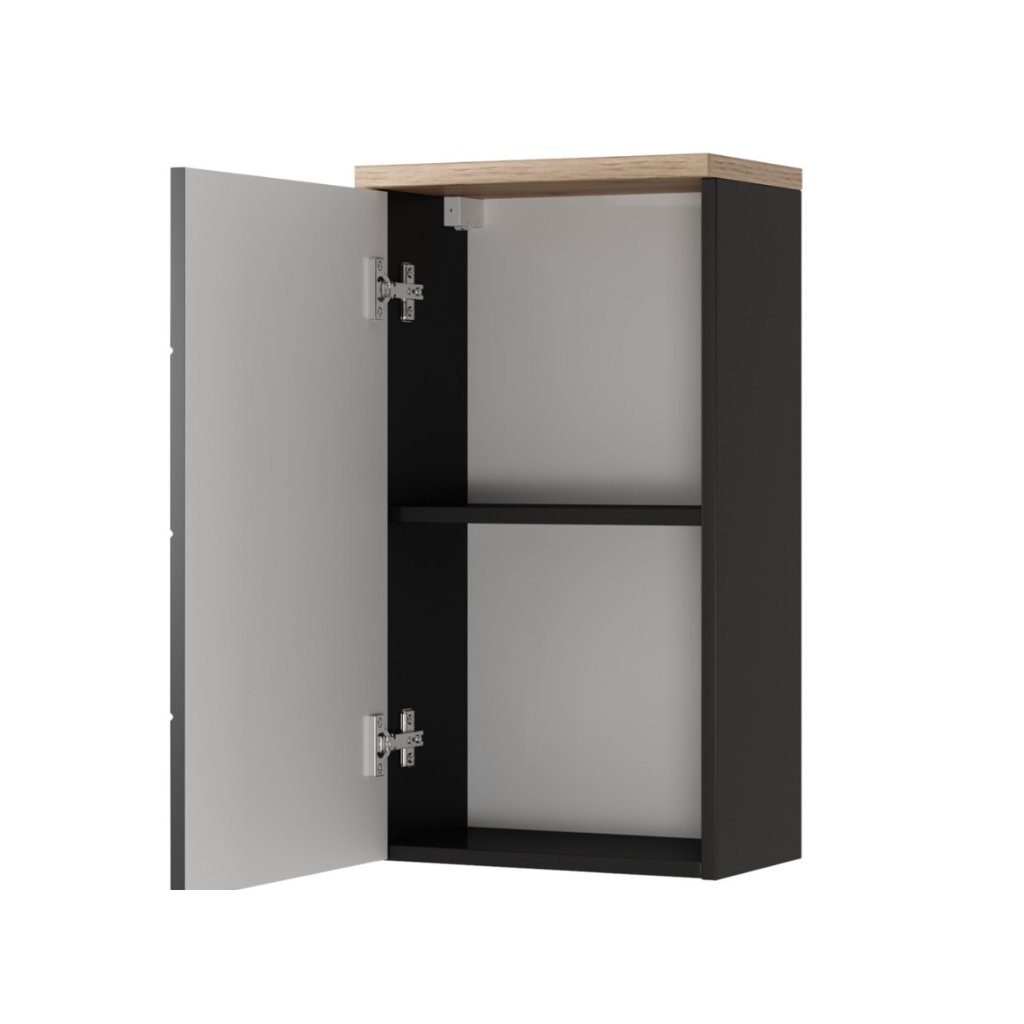 Závesná kúpeľňová skrinka SWING 71 zaujme matným čiernym povrchom v kombinácii s prírodným dubom artisan, čo vytvára elegantný a moderný dizajn. Nábytok zo série SWING je ideálnou voľbou pre tých, ktorí uprednostňujú dekory s jemným a decentným charakterom. Pre dosiahnutie harmonického interiéru odporúčame kombinovať zostavu so svetlou dlažbou alebo prírodným kameňom. Skrinka SWING je jednodverová a vybavená praktickou poličkou.