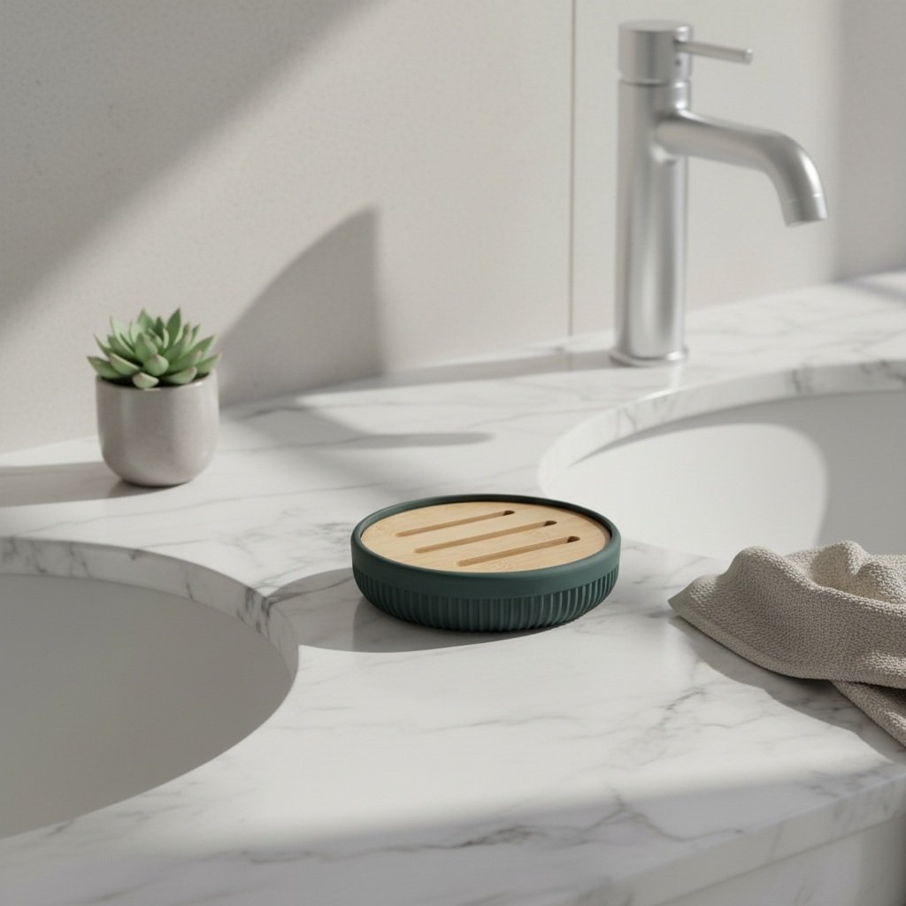 Kvalitné kúpeľňové doplnky v rôznych farbách sa stávajú čoraz obľúbenejšou voľbou pre moderné kúpeľne. Mydelnička FRIDA v elegantnej kombinácii zelenej farby a bambusového detailu pôsobí sviežo a štýlovo. Jeho dizajn dodáva kúpeľni šmrnc a zároveň môže slúžiť ako dekorácia, ktorá oživí celý priestor. Okrem mydelničky je možné doplniť ďalšie kúpeľňové doplnky zo série FRIDA, ako dávkovač, pohár na kefky, tácku či WC kefu, a vytvoriť tak harmonický set. Tento komplet vám umožní farebne zladiť doplnky s kúpeľňovým textilom, obkladmi alebo dekoráciami a dosiahnuť jednotný a štýlový vzhľad celej kúpeľne.