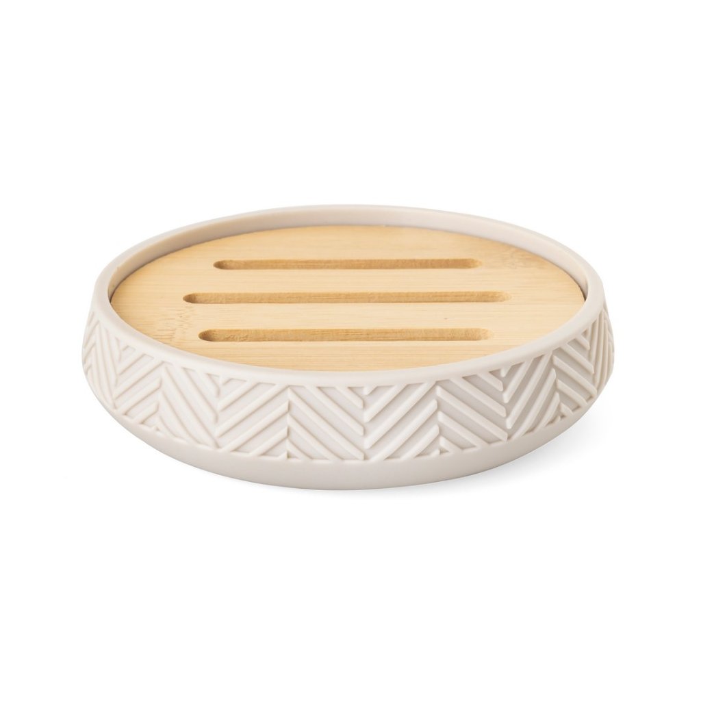 Praktická mydelnička HERMOSA | AWD02191972 v béžovej farbe je elegantným a moderným doplnkom do každej kúpeľne. Dekoračný prvok z prírodného bambusu dodáva priestoru teplo a útulnú atmosféru. Mydelnička je ideálnou voľbou pre tých, ktorí uprednostňujú dokonalú rovnováhu medzi estetikou a funkčnosťou.