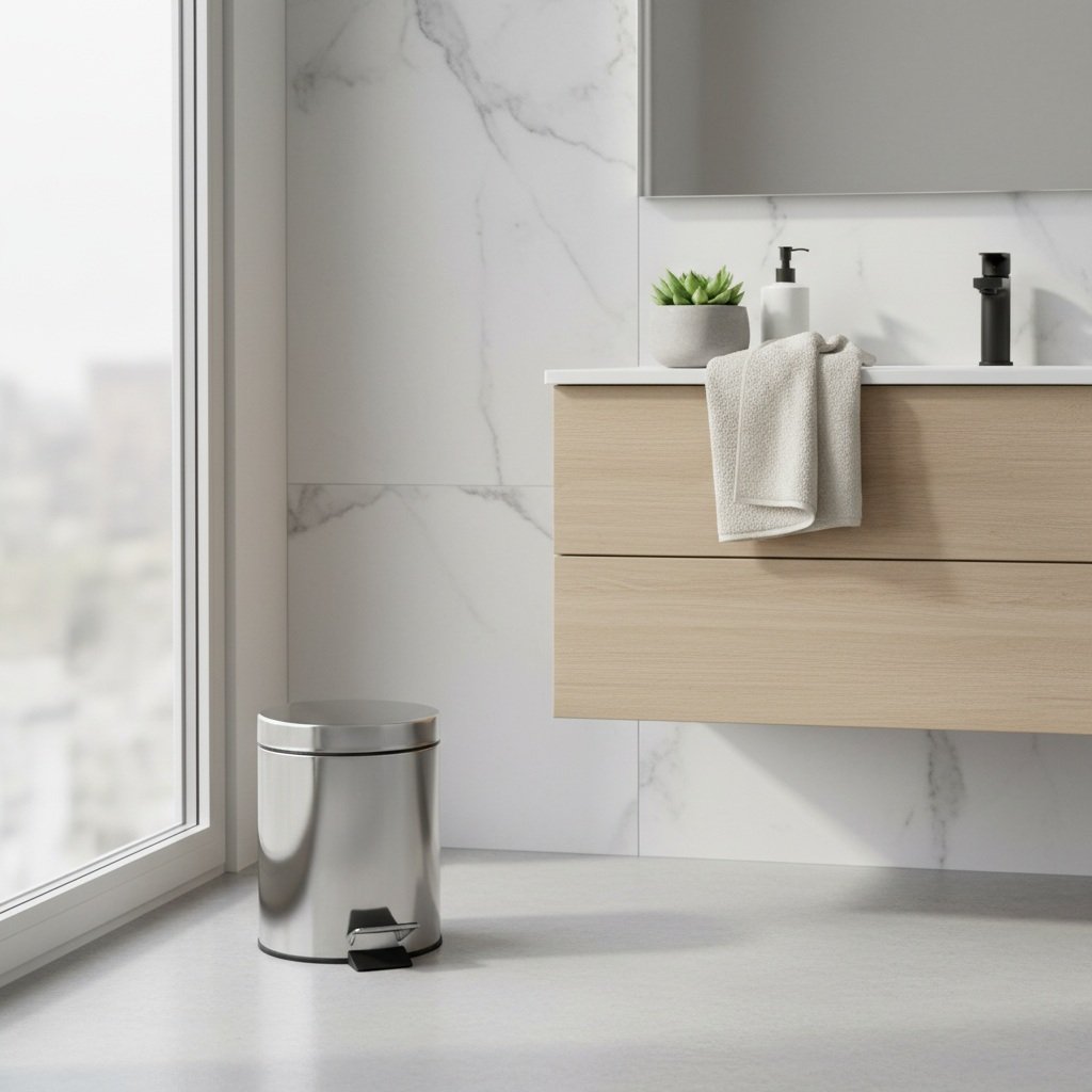 Kvalitné kúpeľňové doplnky v moderných dizajnových prevedeniach sú čoraz obľúbenejšie. Odpadkový kôš s objemom 3 l zaujme svojím moderným vzhľadom a praktickým, jednoduchým otváraním, vďaka čomu je ideálnym doplnkom do každej kúpeľne.
