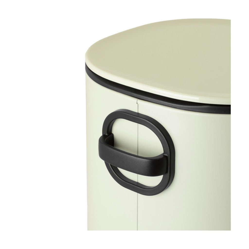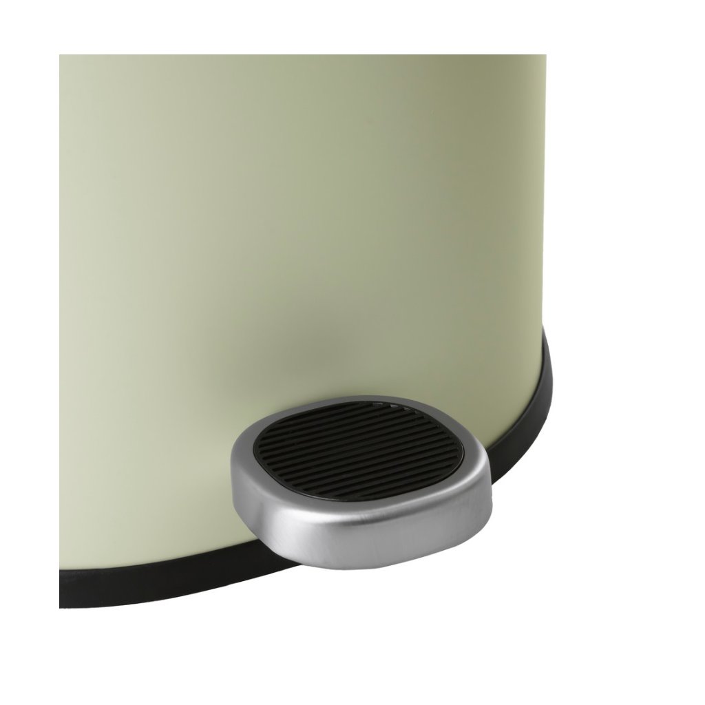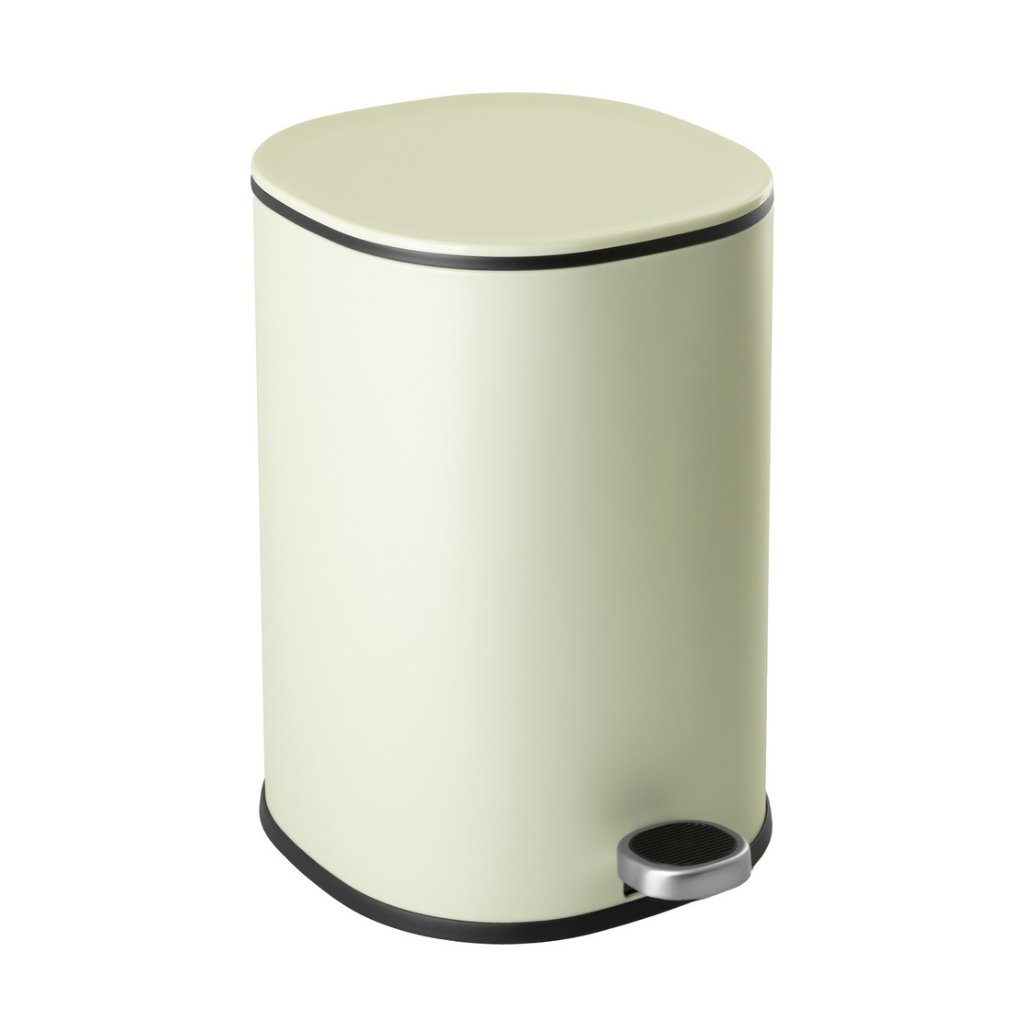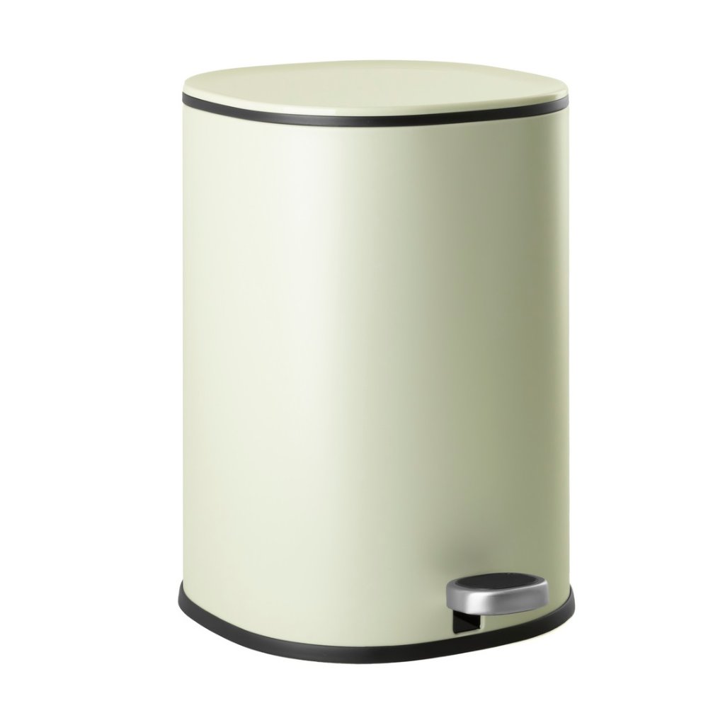 Odpadkový kôš je vyrobený z lakovanej ocele v jemnom, veľmi svetlom olivovom odtieni, čo mu dodáva moderný vzhľad a zároveň zaručuje odolnosť. Systém pomalého zatvárania veka zabezpečuje tichú a pohodlnú manipuláciu. Hygienický pedál umožňuje otváranie bez použitia rúk, zatiaľ čo odnímateľné plastové vnútorné vedro výrazne uľahčuje vyprázdňovanie a čistenie. Zadná rukoväť umožňuje jednoduché prenášanie koša a praktická funkcia aretácie veka vo zvislej polohe zjednodušuje jeho vyprázdňovanie.