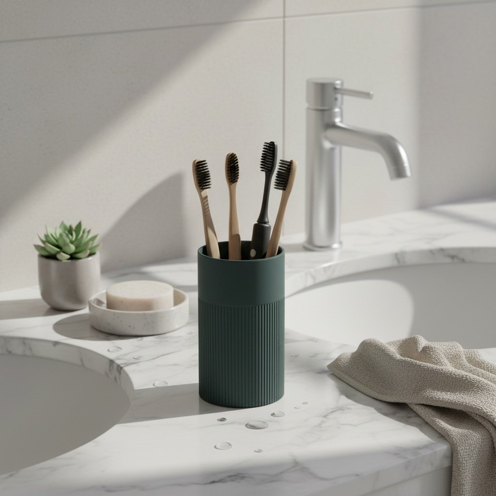 Kvalitné kúpeľňové doplnky v rôznych farbách sa stávajú čoraz obľúbenejšou voľbou pre moderné kúpeľne. Pohár na kefky FRIDA v elegantnej kombinácii zelenej farbe pôsobí sviežo a štýlovo. Jeho dizajn dodáva kúpeľni šmrnc a zároveň môže slúžiť ako dekorácia, ktorá oživí celý priestor. Okrem pohára je možné doplniť ďalšie kúpeľňové doplnky zo série FRIDA, ako dávkovač, mydelnička, tácku či WC kefu, a vytvoriť tak harmonický set. Tento komplet vám umožní farebne zladiť doplnky s kúpeľňovým textilom, obkladmi alebo dekoráciami a dosiahnuť jednotný a štýlový vzhľad celej kúpeľne.
