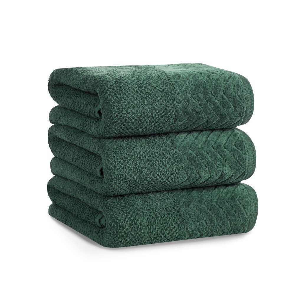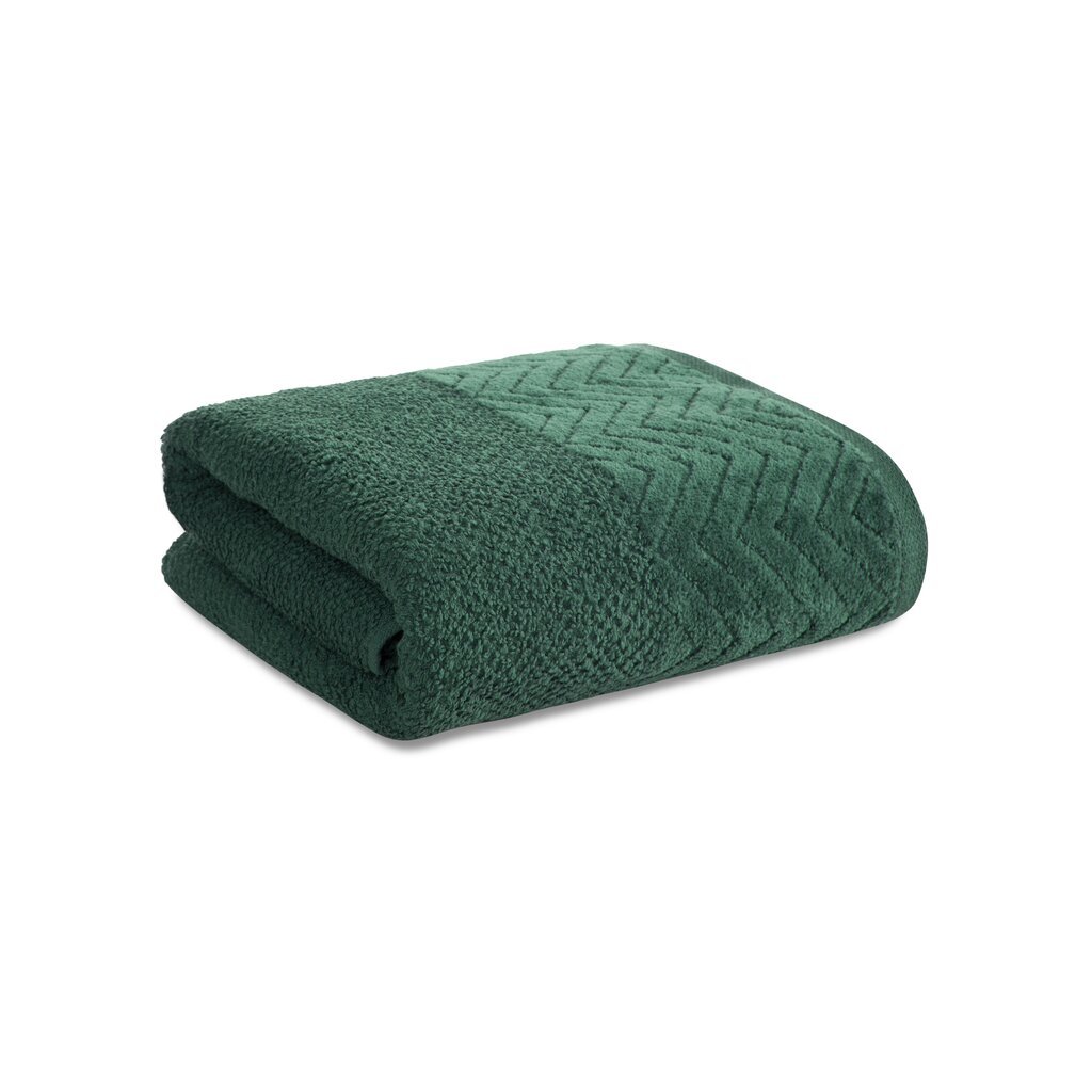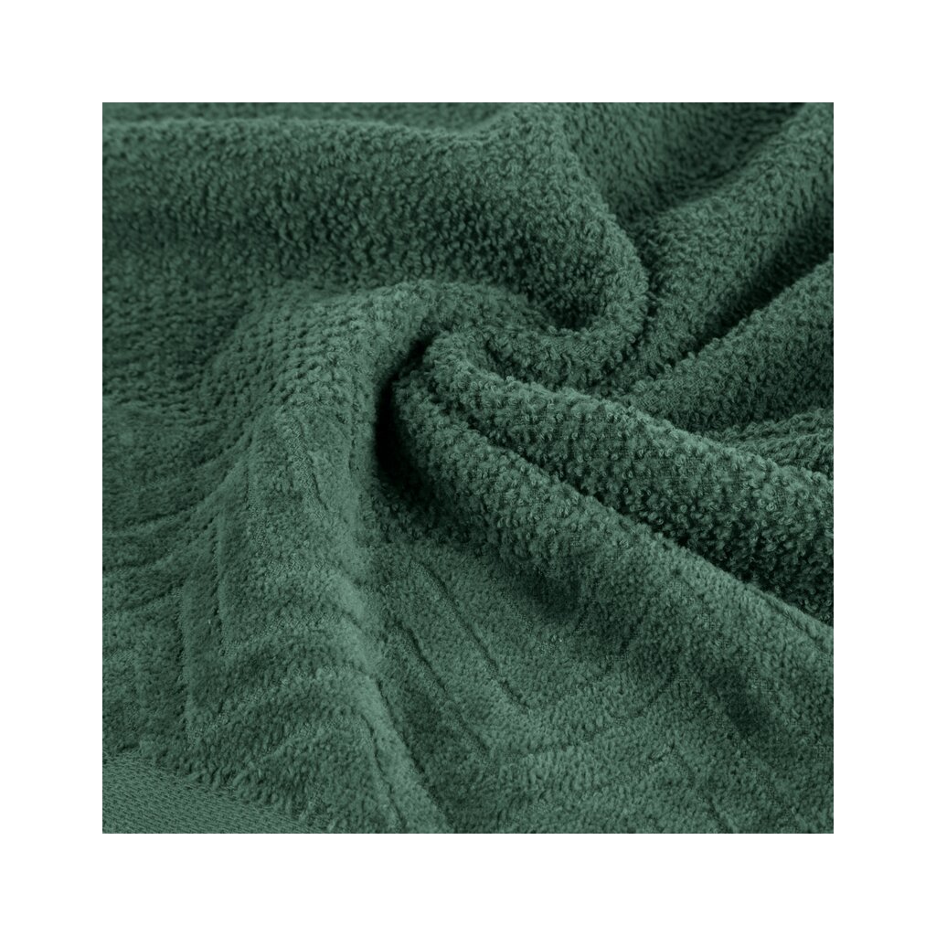 Elegantný uterák z jemného a vysoko savého froté v štýlovom zelenom odtieni dodá kúpeľni sviežosť a eleganciu. Okraje zdobené jemným zamatovým lemom podčiarkujú jeho moderný vzhľad. Uterák je príjemný na dotyk, ľahko udržiavateľný a vyrobený z kvalitného materiálu, ktorý zaručuje dlhú životnosť.