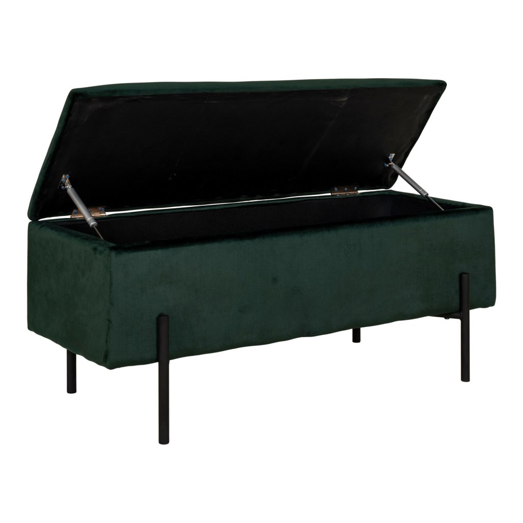 Táto lavica v zelenom prevedení je ideálnym doplnkom pre moderný interiér. Jednoduché línie a kovové nohy v čiernej farbe jej dodávajú elegantný industriálny vzhľad. Mäkké čalúnenie zabezpečuje pohodlné sedenie, zatiaľ čo úložný priestor pod sedadlom ponúka praktické miesto na odkladanie. Vďaka svojmu univerzálnemu dizajnu sa hodí do predsiene, spálne aj obývacej izby.