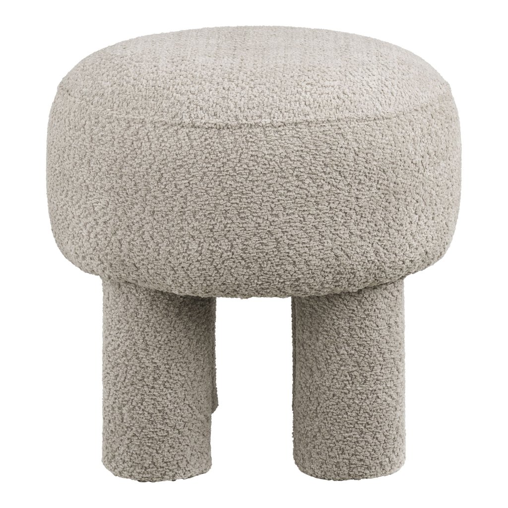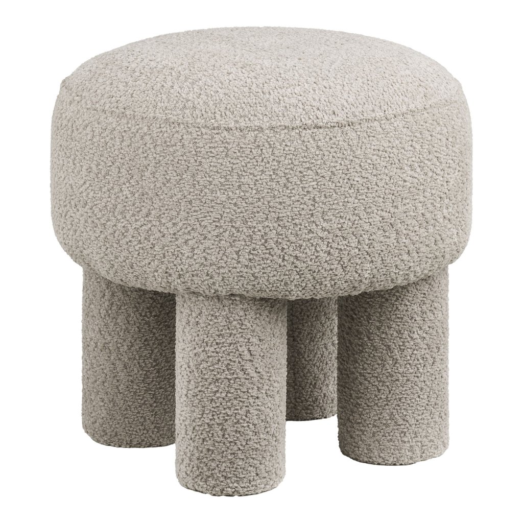 Tento dizajnový taburet v bledosivom prevedení je skvelým spojením moderného štýlu a praktickosti. Jeho jedinečný tvar so štyrmi robustnými nohami pôsobí originálne a dodáva interiéru osobitý charakter. Mäkké čalúnenie z príjemnej látky zabezpečuje pohodlné sedenie aj pri dlhšom používaní. Vďaka neutrálnemu odtieňu sa ľahko kombinuje s rôznym typom nábytku a hodí sa do obývačky, spálne aj predsiene.