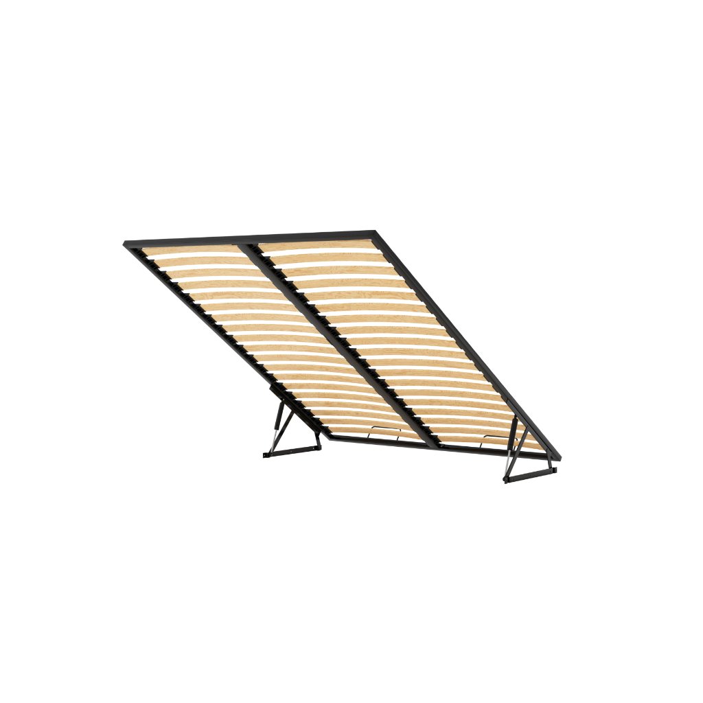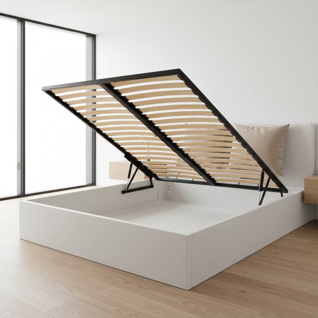 Výklopný rošt SKP 120 je pevný a spoľahlivý základ pre postele s úložným priestorom. Tvorí ho masívny kovový rám s čiernym lakom a 2×19 brezových lamiel so šírkou 53 mm. Lamely sú osadené v plastových puzdrách, takže matrac má pevnú oporu a konštrukcia zároveň účinne pohlcuje nárazy pri používaní. Montážne skrutky nie sú v balení z dôvodu rozdielnych materiálov a hrúbok postelí, ku ktorým sa rošt montuje. Pri plynových pružinách odporúčame v objednávke uviesť hmotnosť matraca, aby bolo možné dodať pružiny s vhodnou silou. Pri ľahšom matraci môže rošt nedoliehať, pri ťažšom bude manipulácia so zdvíhaním náročnejšia. V štandarde sú súčasťou balenia univerzálne plynové pružiny.