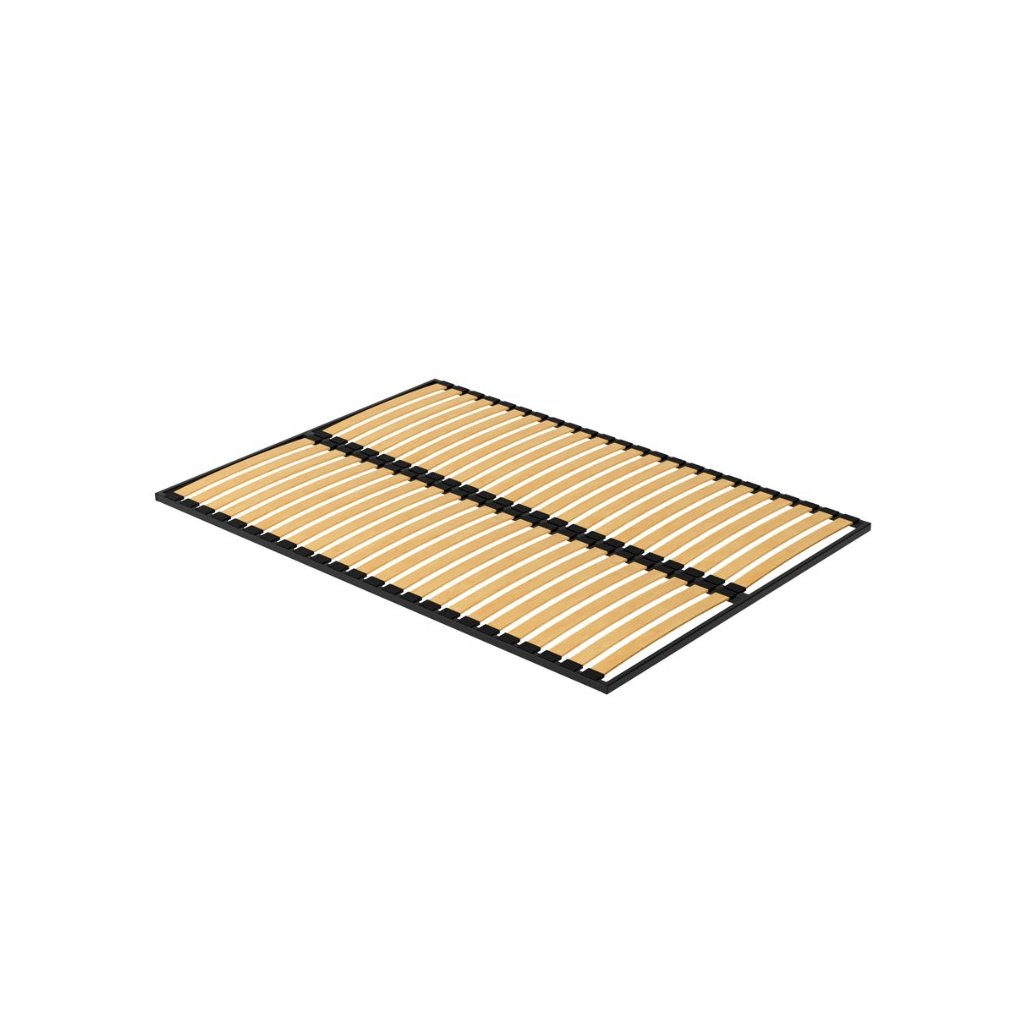 Kovový rám roštu je z pevného kovového profilu lakovaného na čierno. Lak vytvára ochrannú vrstvu proti korózii, predlžuje životnosť konštrukcie a zároveň pôsobí esteticky čisto a moderne. Nosný systém tvoria brezové lamely — brezové drevo je pružné, pevné a pri záťaži sa neštiepi. Vďaka prirodzenej elasticite sa lamely prispôsobujú tlaku tela a zlepšujú komfort spánku aj životnosť matraca. Konce lamiel sú uložené v plastových koncovkách, ktoré tlmia vibrácie a nárazy, zabraňujú vŕzganiu a fixujú lamely v správnej polohe bez poškodenia dreva či rámu.