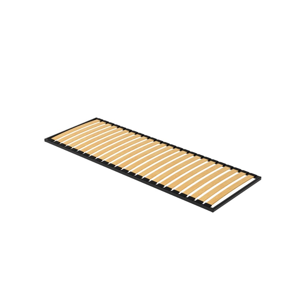 Lamelový rošt SMS 90 v pevnom kovovom ráme poskytuje stabilný základ pre matrac. Konštrukcia je vyrobená z ocele s čiernym lakovaním a doplnená o 24 brezových lamiel so šírkou 53 mm. Lamely sú uložené v plastových koncovkách, ktoré zaisťujú pevnú oporu a tlmia nárazy pri používaní. Kovový rám je z profilu 20 × 30 × 2 a rošt sa dodáva už zmontovaný v celku.