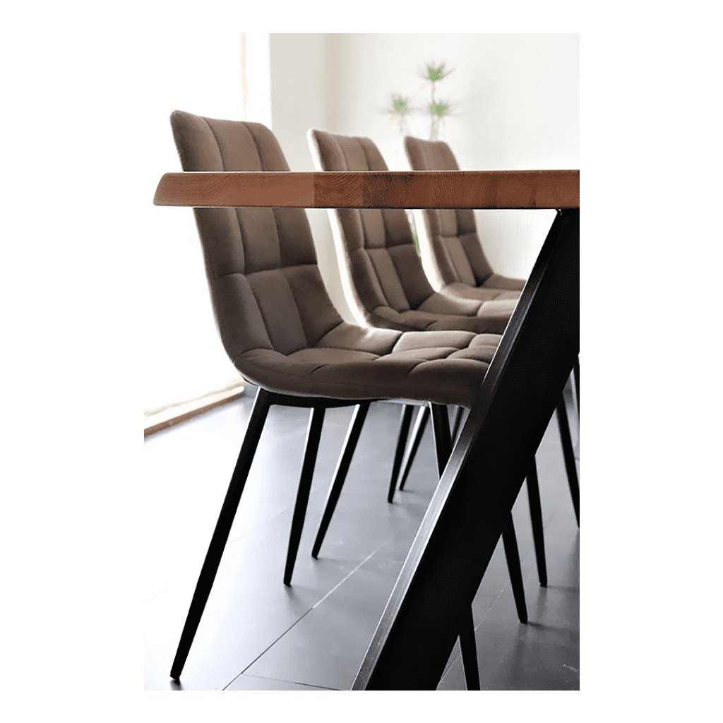 Sedák a operadlo sú potiahnuté kvalitnou látkou, materiál je príjemný na dotyk, mäkký a pohodlný aj pri dlhšom sedení. Štíhle nohy sú vyrobené z pevného kovu s čiernou povrchovou úpravou. Materiál zaručuje vysokú stabilitu, dlhú životnosť a zároveň vizuálnu ľahkosť dizajnu.