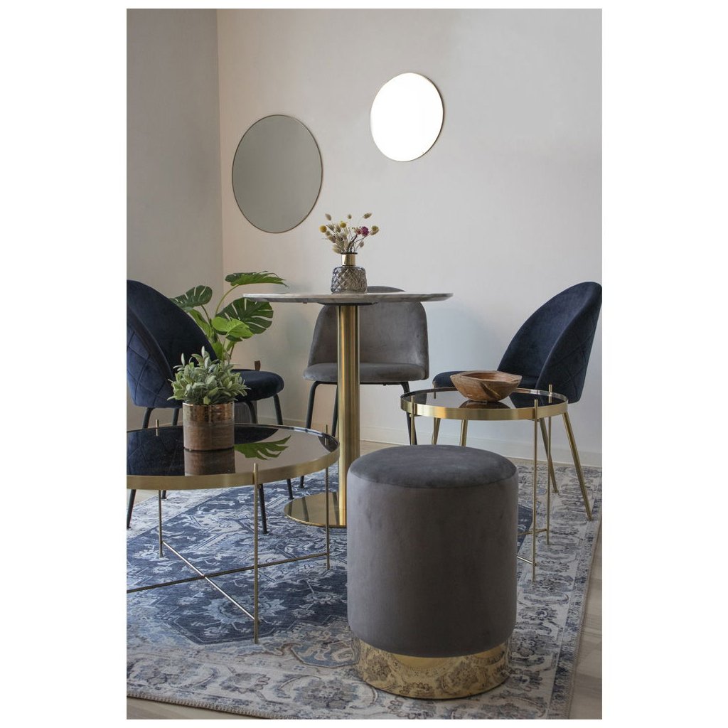 Sedák jedálenskej stoličky GENEVE je čalúnený luxusnou zamatovou látkou, ktorá pôsobí elegantne a zároveň je príjemná na dotyk. Nohy sú vyrobené z pevnej ocele s mosadznou povrchovou úpravou, čo zaručuje stabilitu, odolnosť a sofistikovaný vzhľad.