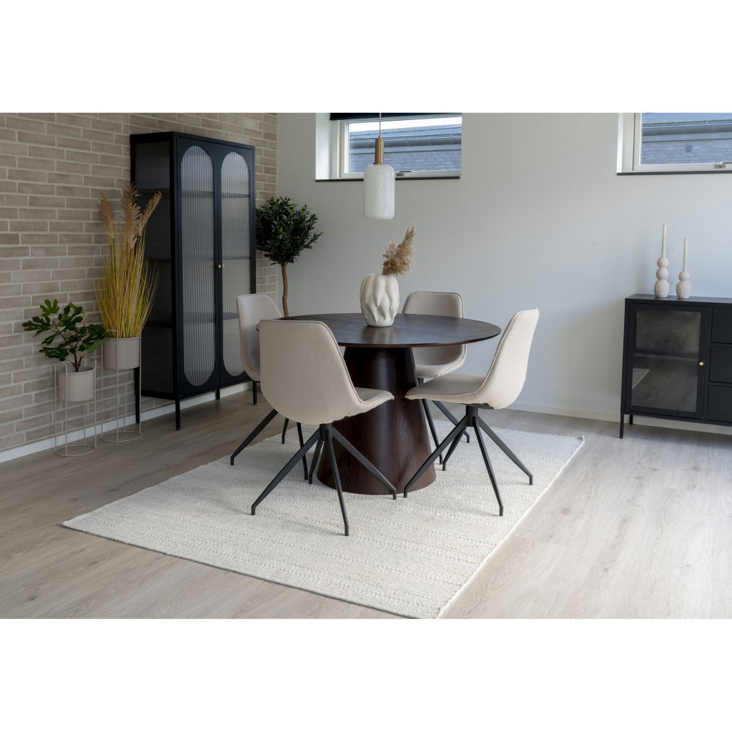 Jedálenský stôl BOLTON s priemerom 120 cm v tmavohnedom farebnom prevedení spája nadčasový dizajn, praktickosť a jemnú eleganciu. Okrúhla doska dodáva priestoru útulnú atmosféru a prirodzený charakter, zatiaľ čo pevná podnož zaručuje stabilitu a pôsobí moderne a vzdušne. Vďaka svojmu univerzálnemu vzhľadu sa jedálenský stôl skvele hodí do rôznych typov interiérov. Je ideálnym miestom na spoločné chvíle pri jedle, rozhovoroch či rodinných oslavách. Spojenie kvalitného spracovania a moderného štýlu robí z tohto stola elegantný a funkčný doplnok každého domova.
