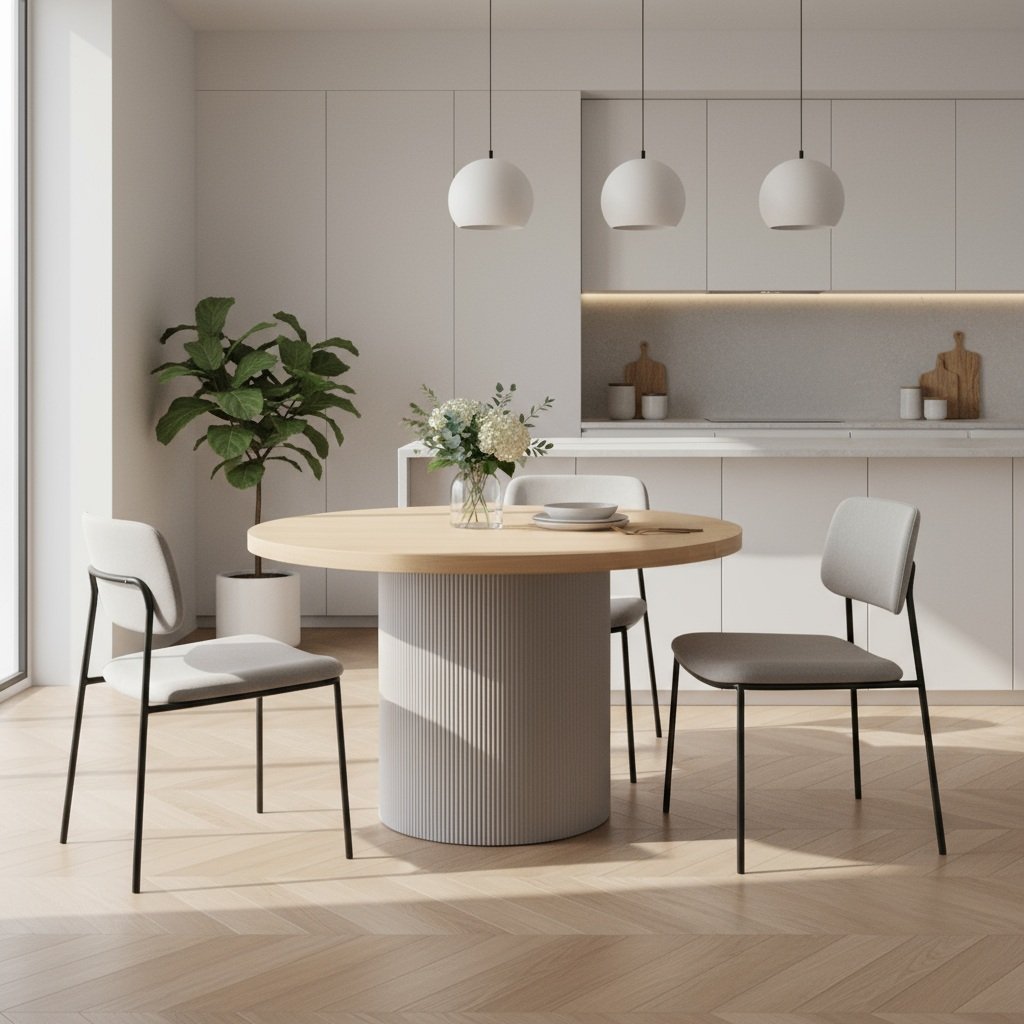 Okrúhly jedálenský stôl SOLVA je stvorený pre tých, ktorí hľadajú rovnováhu medzi eleganciou a funkčnosťou. Doska v prírodnom odtieni dreva vnáša do priestoru teplo domova, zatiaľ čo piesková vrúbkovaná noha pôsobí moderne a dodáva stolu výnimočný charakter. Jeho priestranné prevedenie ponúka dostatok miesta pre rodinné večere aj príjemné posedenia s priateľmi. Každý detail jedálenského stola je navrhnutý s dôrazom na kvalitu, stabilitu a estetiku. Vďaka nadčasovému dizajnu sa ľahko začlení do rôznych štýlov interiéru a stane sa prirodzeným centrom vašej jedálne.
