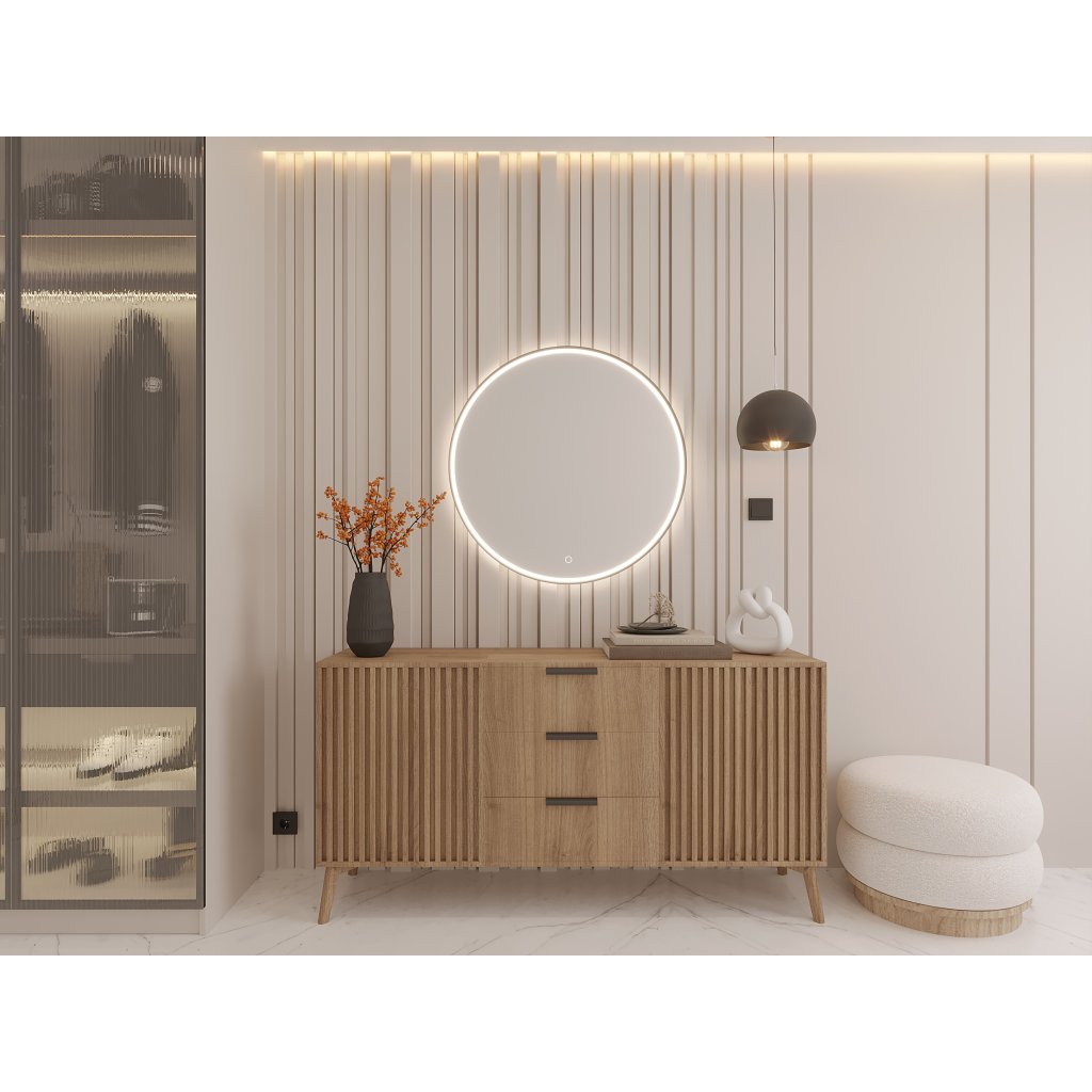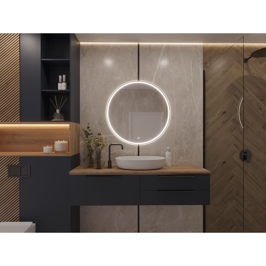 Okrúhle zrkadlo DIVISSI L s priemerom 60 cm je štýlovým a odolným doplnkom do každého interiéru. Vďaka svojmu elegantnému a minimalistickému dizajnu sa dokonale hodí do obývačky, kúpeľne, predsiene či spálne a dodáva priestoru moderný nádych. Model DIVISSI je dostupný ako závesné aj nástenné zrkadlo. Navyše je vybavené energeticky úsporným LED osvetlením, ktoré zabezpečuje nízku spotrebu energie a dlhú životnosť.