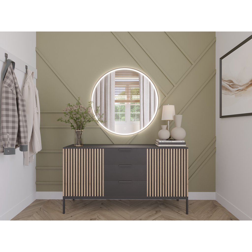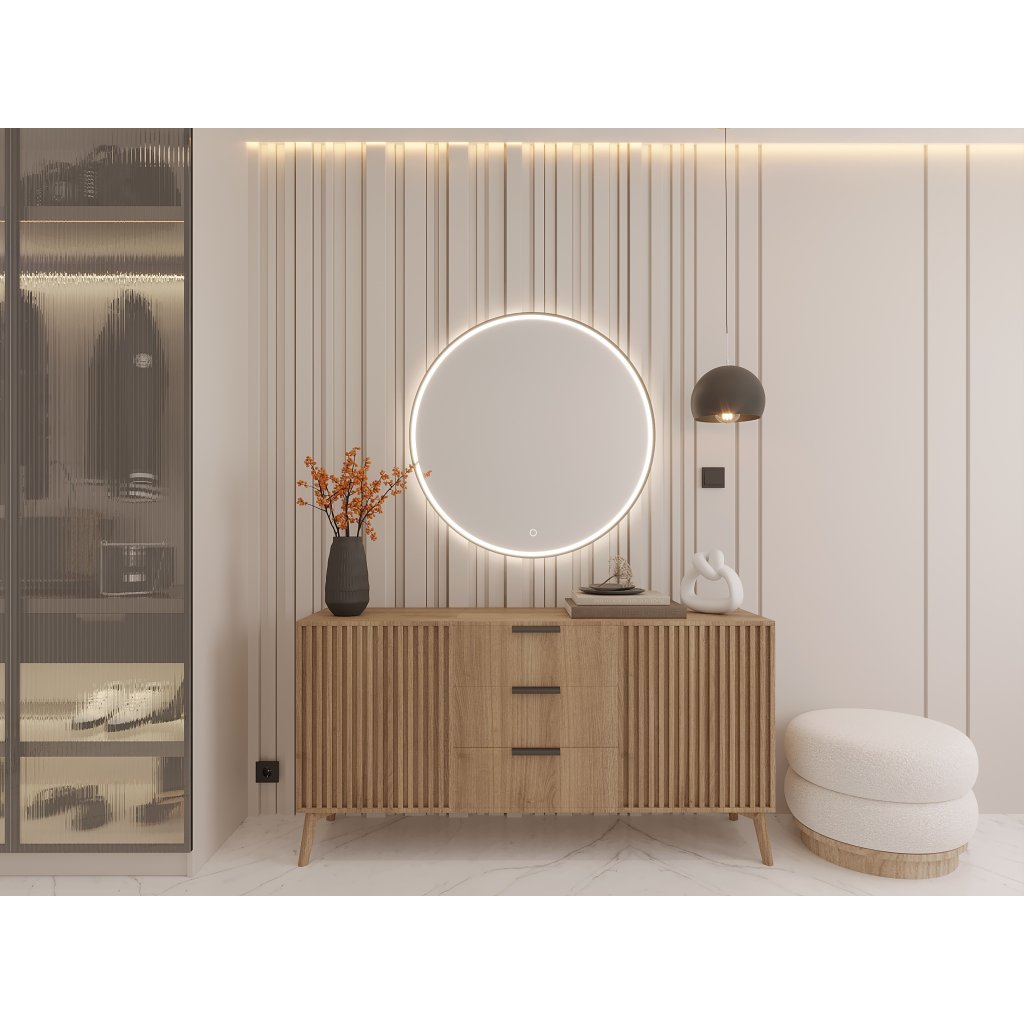 Okrúhle zrkadlo DIVISSI L s priemerom 80 cm je štýlovým a odolným doplnkom do každého interiéru. Vďaka svojmu elegantnému a minimalistickému dizajnu sa dokonale hodí do obývačky, kúpeľne, predsiene či spálne a dodáva priestoru moderný nádych. Model DIVISSI je dostupný ako závesné aj nástenné zrkadlo. Navyše je vybavené energeticky úsporným LED osvetlením, ktoré zabezpečuje nízku spotrebu energie a dlhú životnosť.
