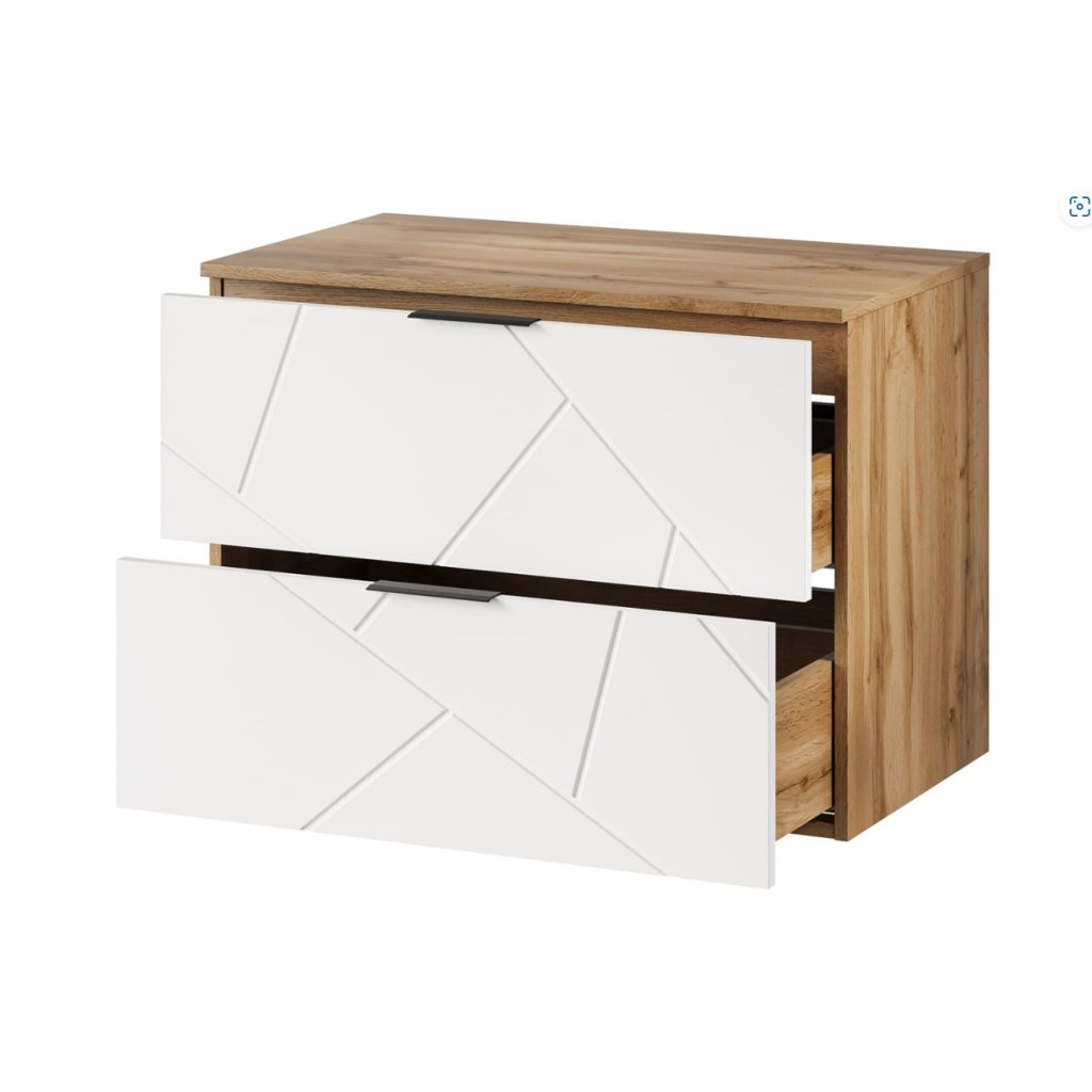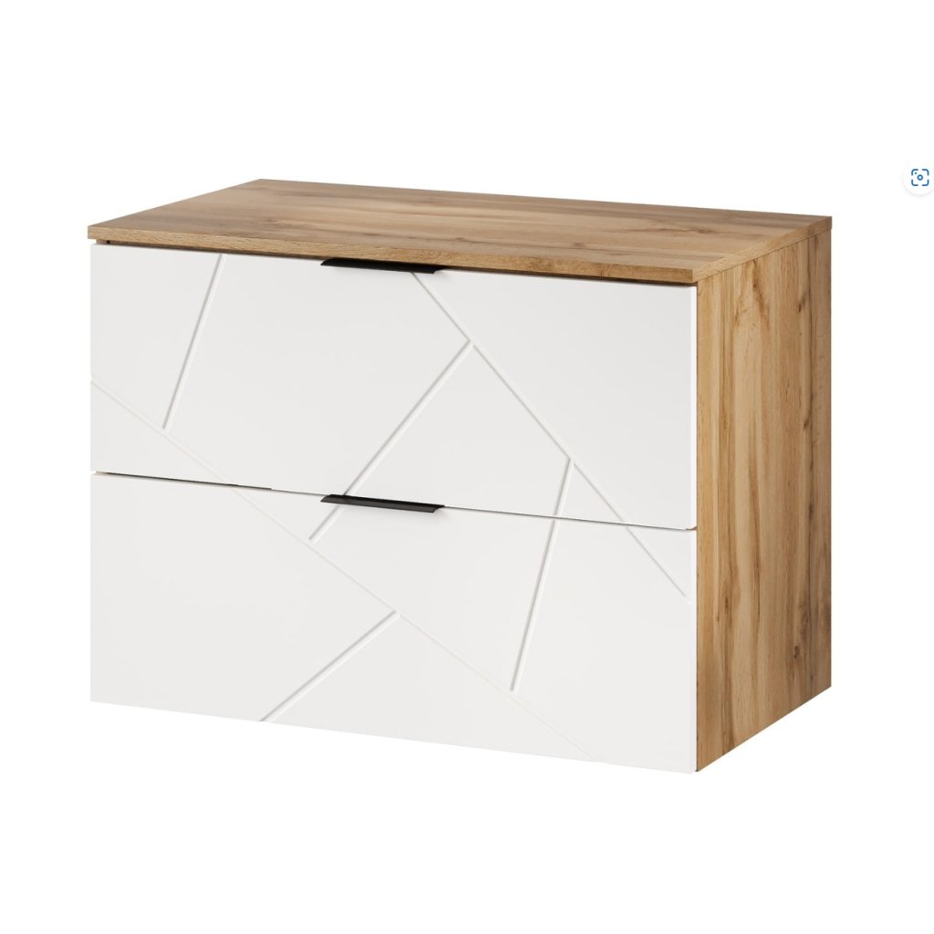 Inšpirujte sa kúpeľňovou kolekciou MAZI, ktorá zaujme jedinečnou farebnosťou a štýlovým dizajnom. Nábytok MAZI dokonale spája estetiku s praktickosťou, vďaka čomu je vhodný aj do menších kúpeľní. Kolekcia je dostupná v elegantnej kombinácii bielej a dubu Wotan. Pekná skrinka pod umývadlo MAZI White 38 má dve priestranné zásuvky a aj dosku pod umývadlo.