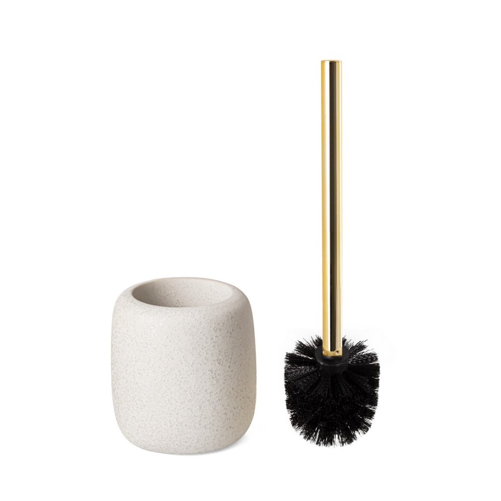 WC kefa zo série Bonita je štýlovým a praktickým doplnkom do každej kúpeľne. WC kefa BONITA | AWD02191915 v teplej príjemnej svetlej farbe s jemnou škvrnitou textúrou, vyniká svojím jedinečným charakterom. Elegantný zlatý detail pridáva nádych luxusu, ktorý skvele zapadne do moderného interiéru.